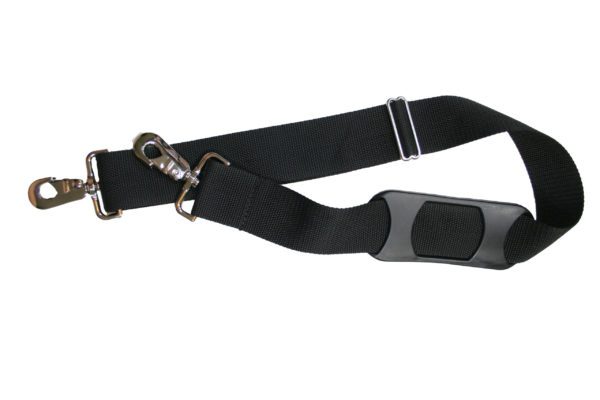 A 2” wide adjustable web strap with shoulder pad and heavy swivel snap. The strap is black, weighs 6 oz. and has a length of 48”.