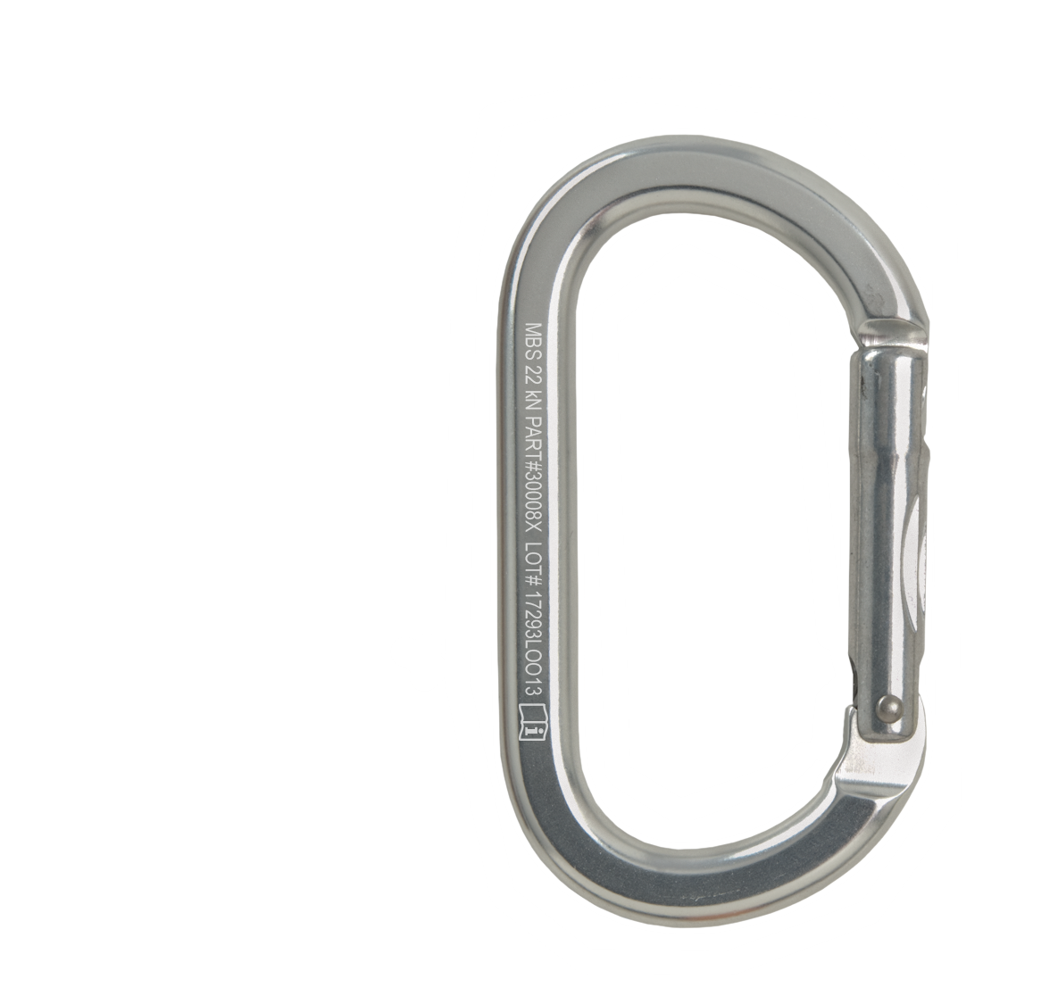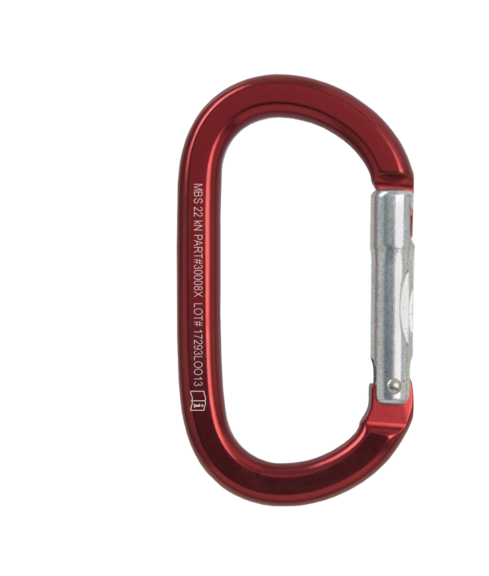 Our oval aluminum carabiner features a unique key-lock design for snag-free operation and a side-swing gate for maximum gate opening. The oval design places equal amounts of force on the spine and gate, allowing the carabiner to maintain full rated strength regardless of the width of the web or rope clipped into it. It’s also a good size to clip over the ropes coming out of a pulley to help mind a Prusik hitch.