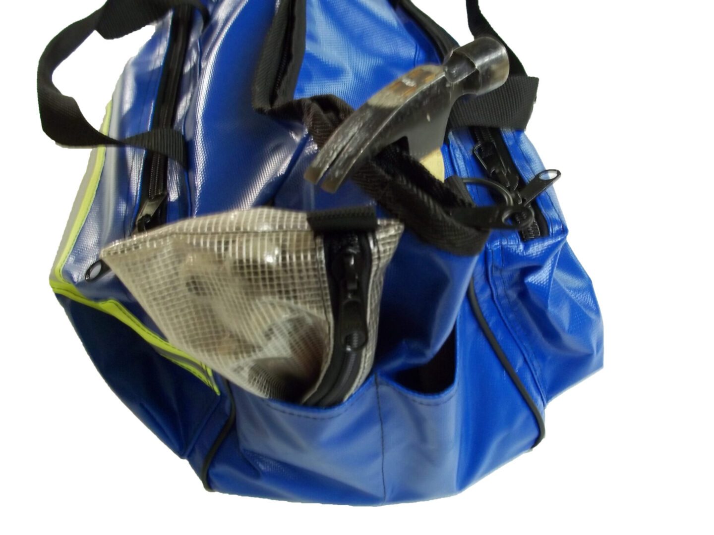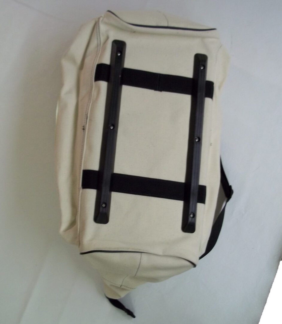 This is a heavy-duty canvas tool bag with a rigid bottom and rails.