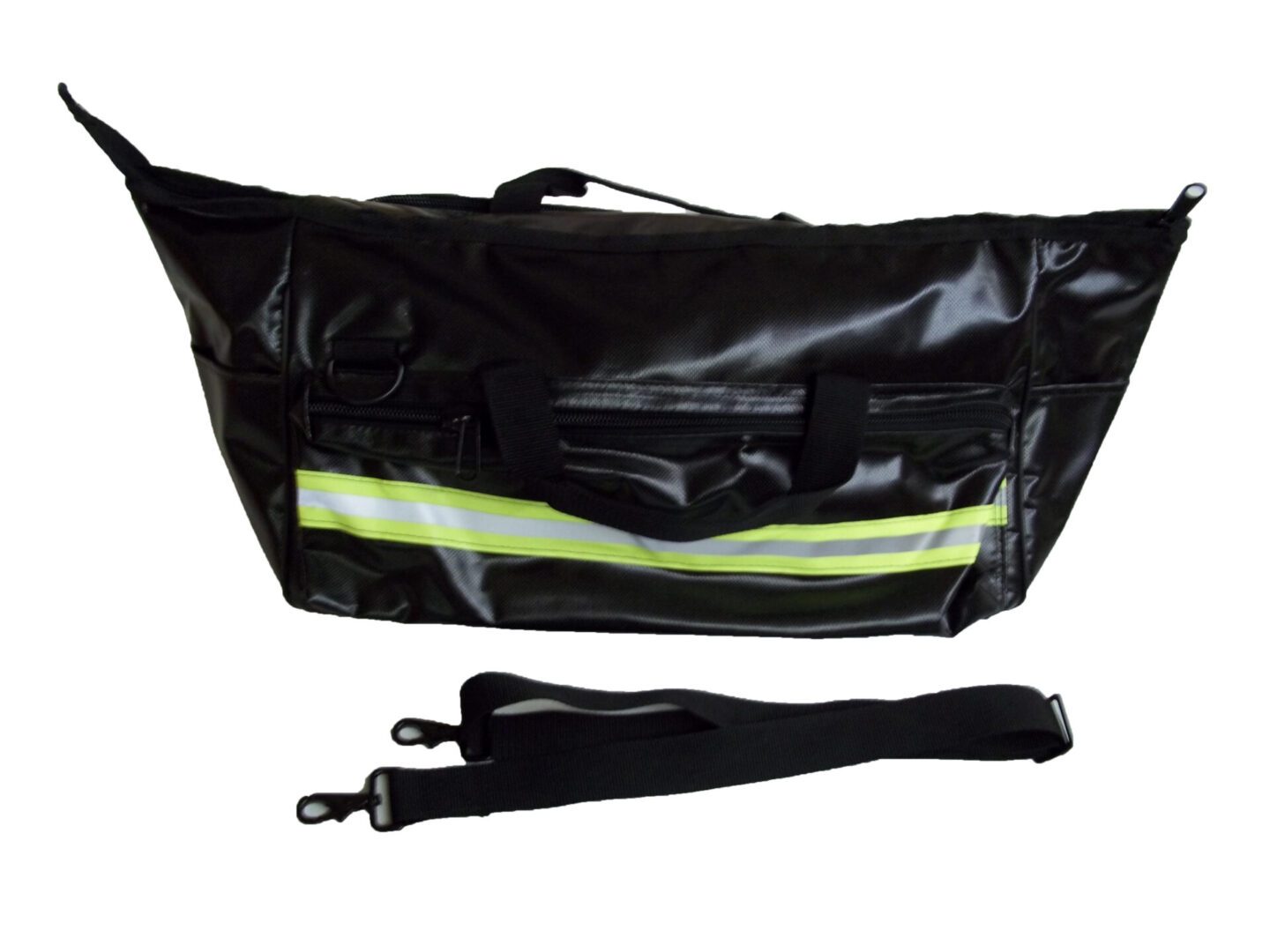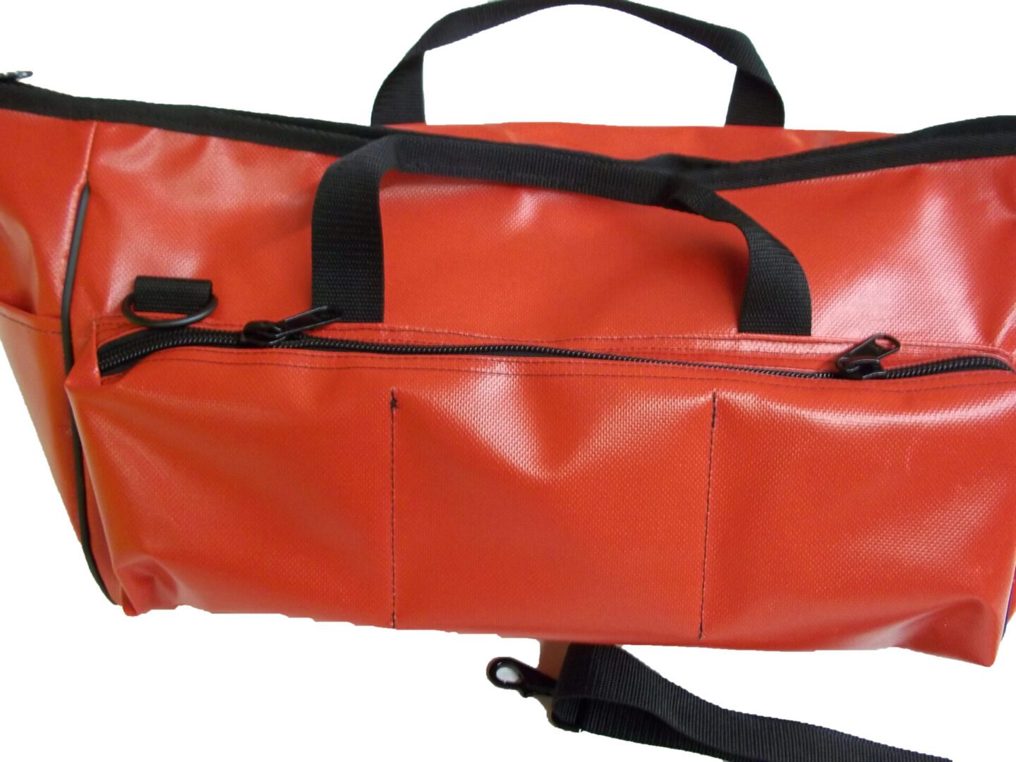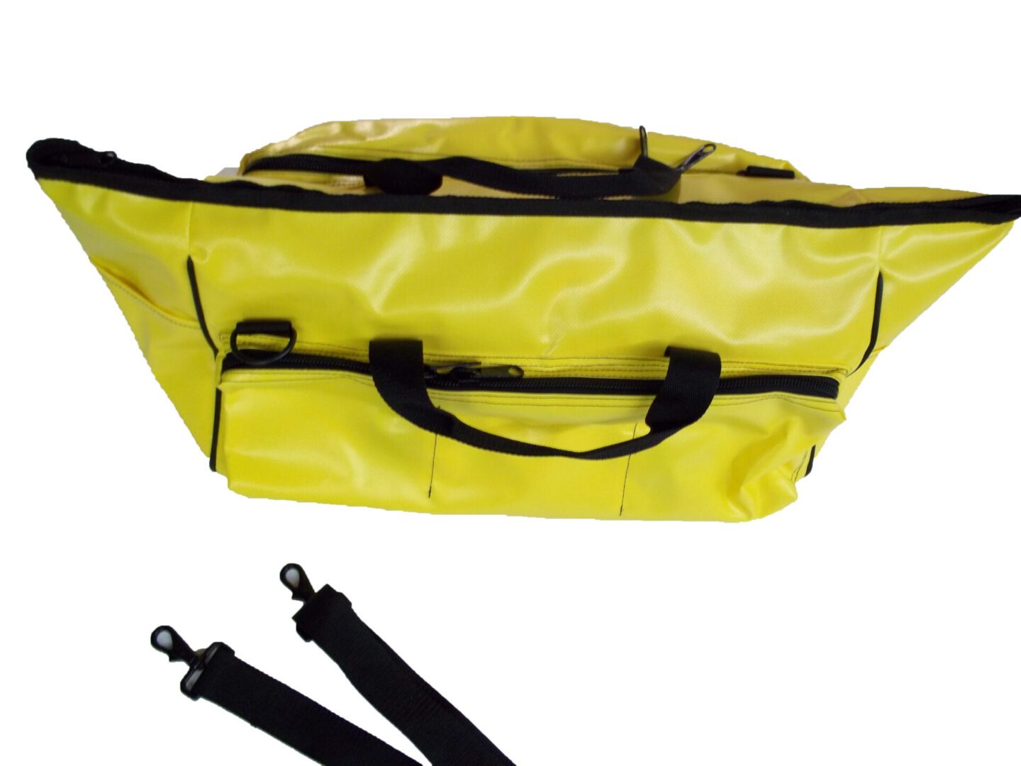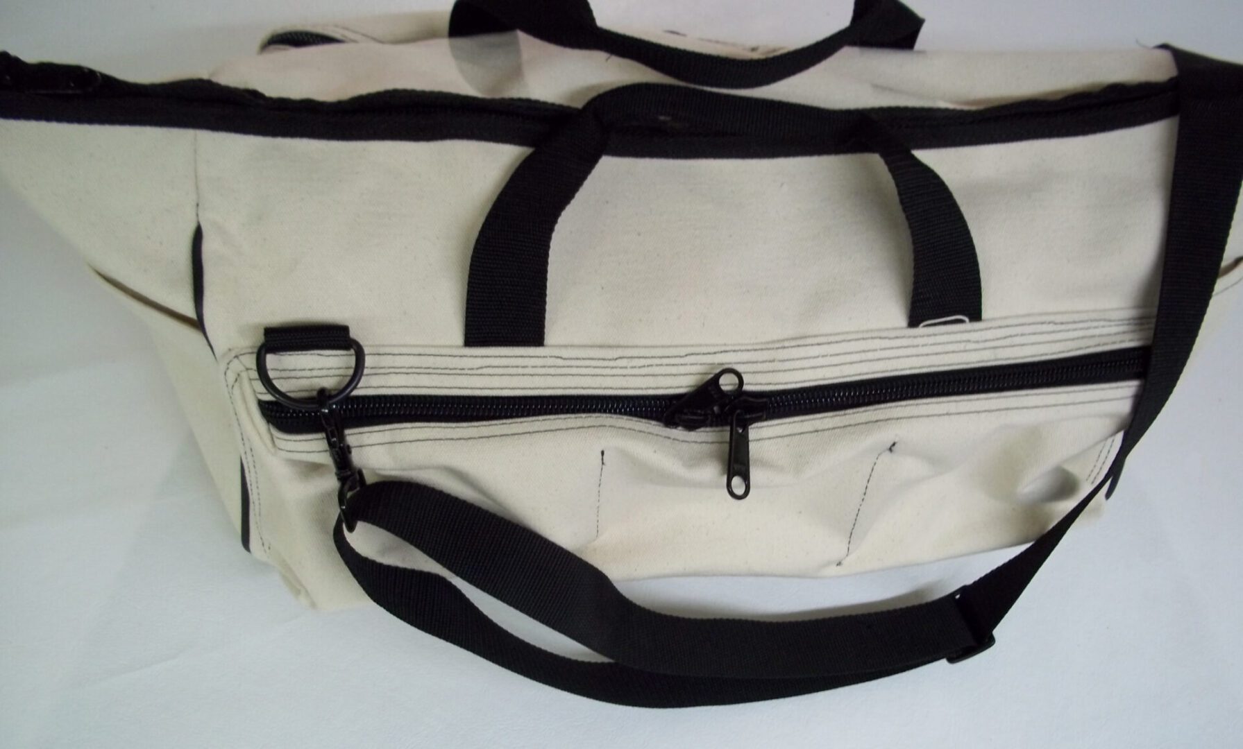 - Has two 19” x 3” x 3” outside zippered pockets with grab handles and a shoulder strap.
