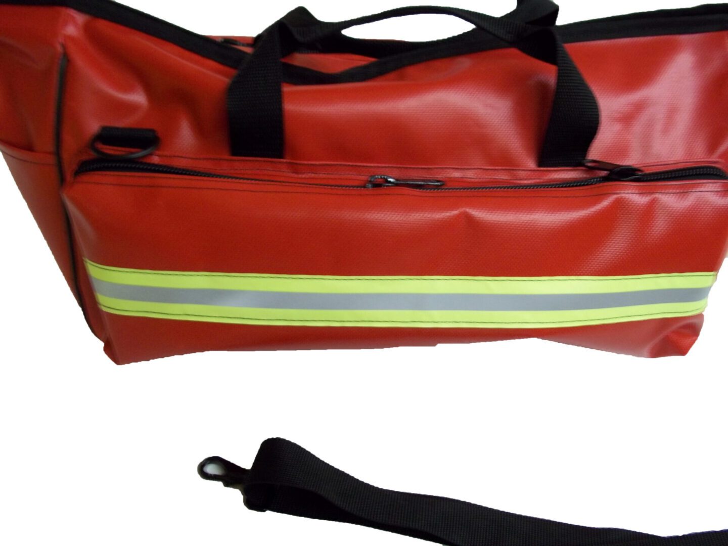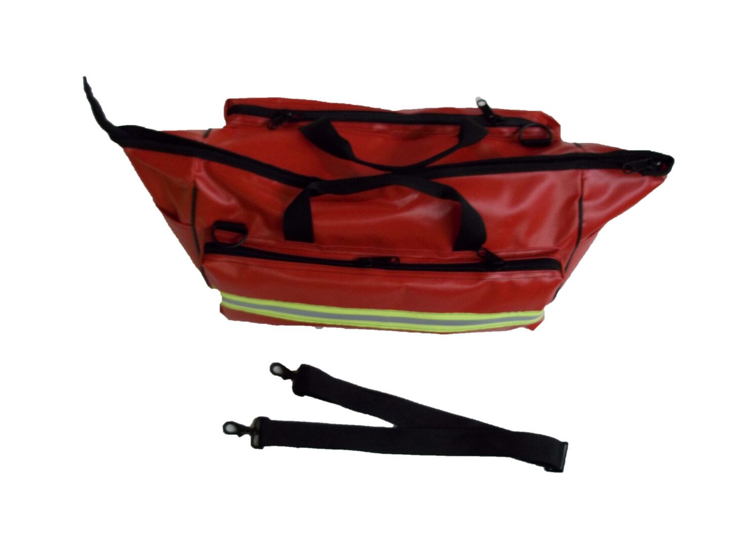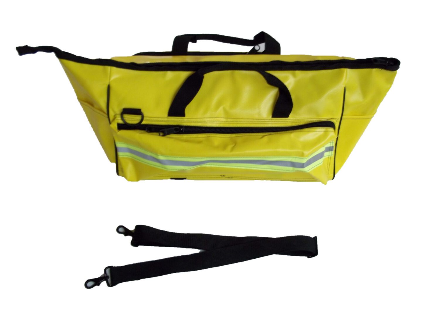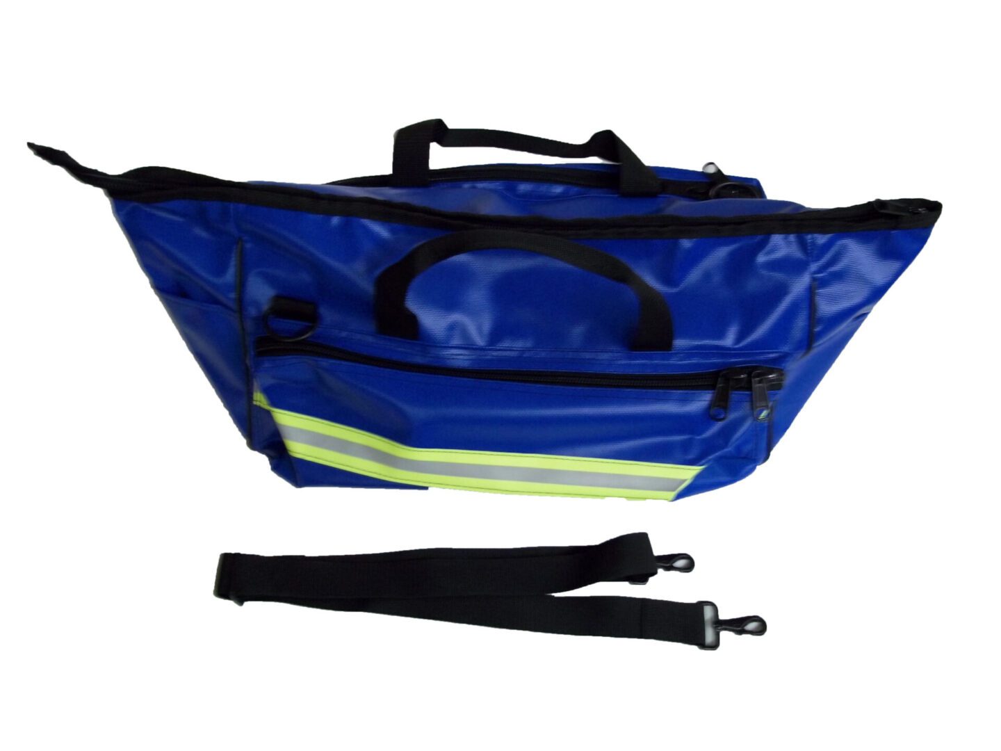 - Has two 19” x 3” x 3” outside zippered pockets with grab handles and a shoulder strap.