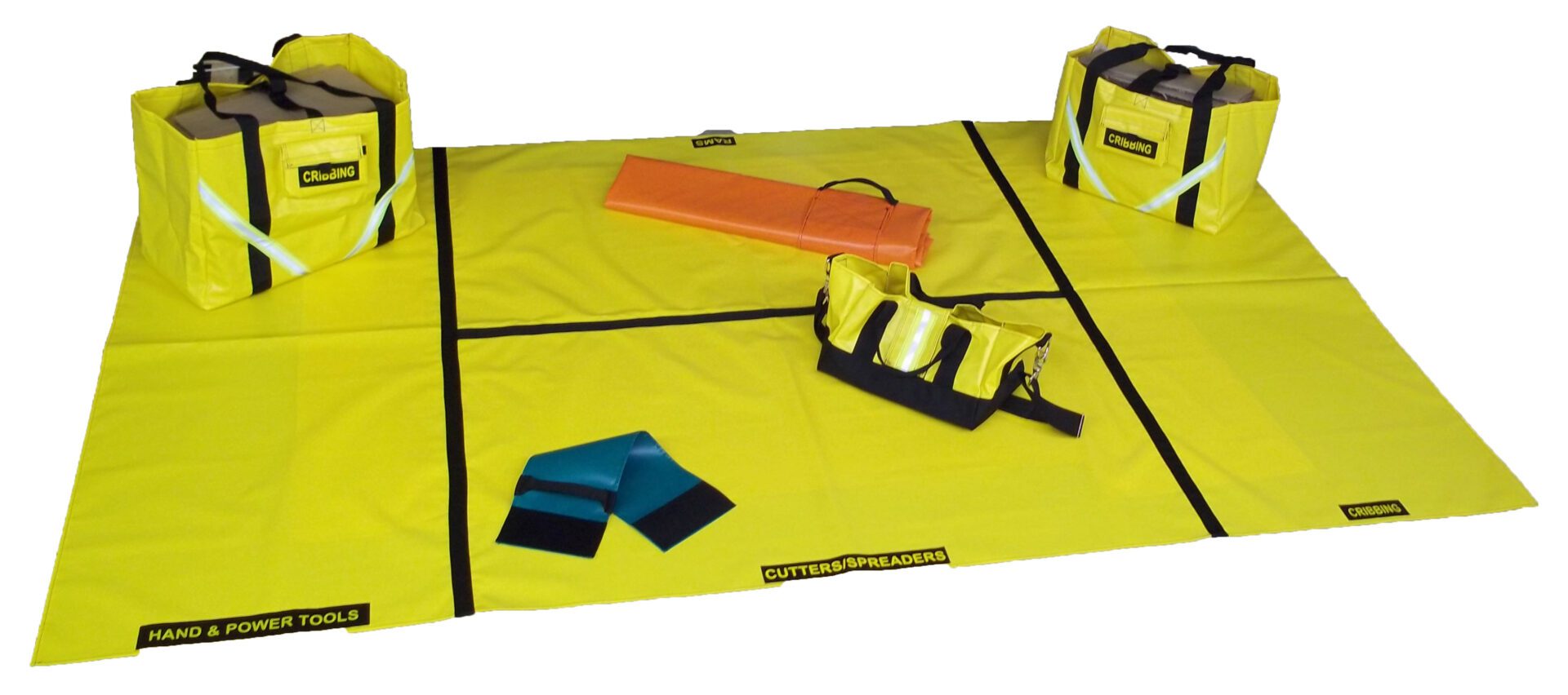 Four Piece Kit (Standard) includes: One Extrication Staging Mat, one Medium Cribbing Bag, one Large Cribbing Bag, and one Rabbit Tool Bag (EXTKIT-1)