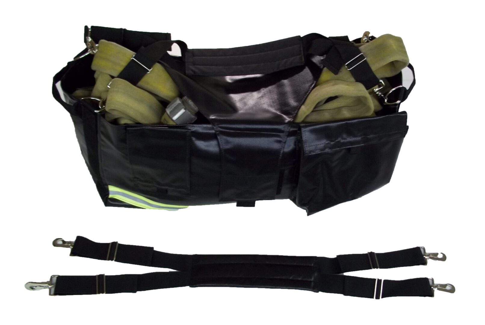 - The High Rise Hose Pack has a shoulder strap with four point connections and grab handles attached at each end for two-firefighter carry.