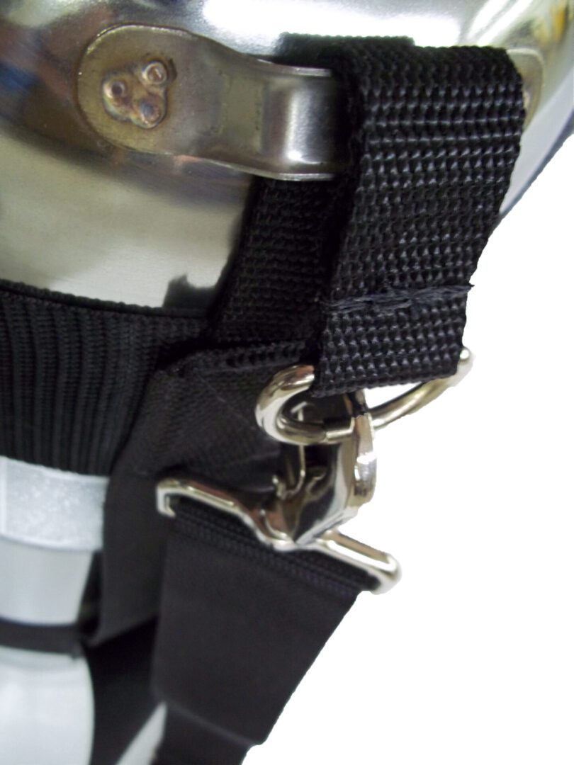 - It also has a lock that keeps the harness attached to the can to keep it from slipping down.
