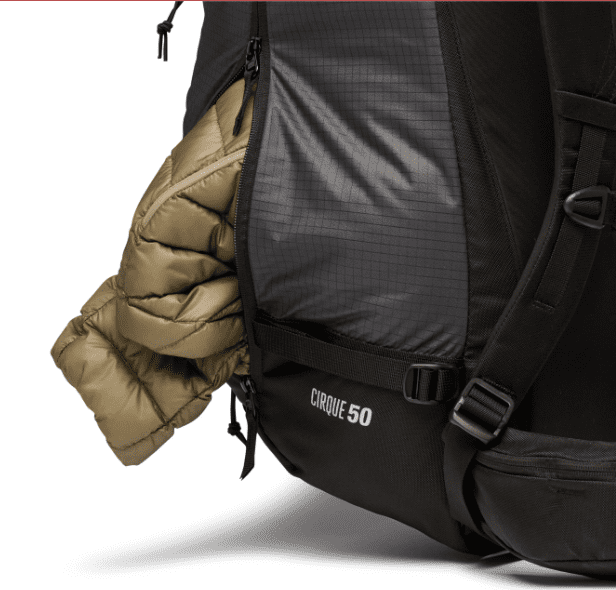 - Hip belt with stretch pocket and pulk sled attachment points