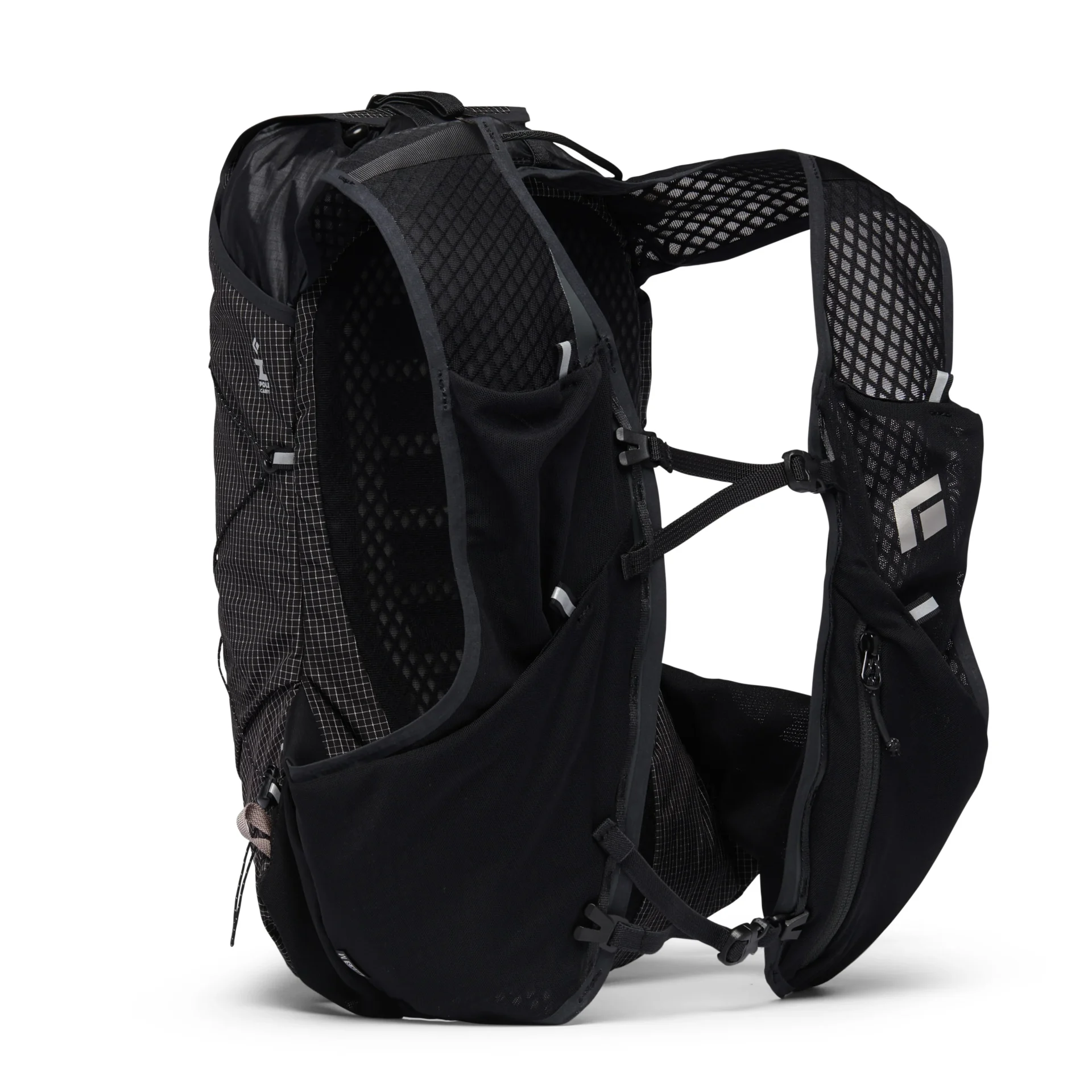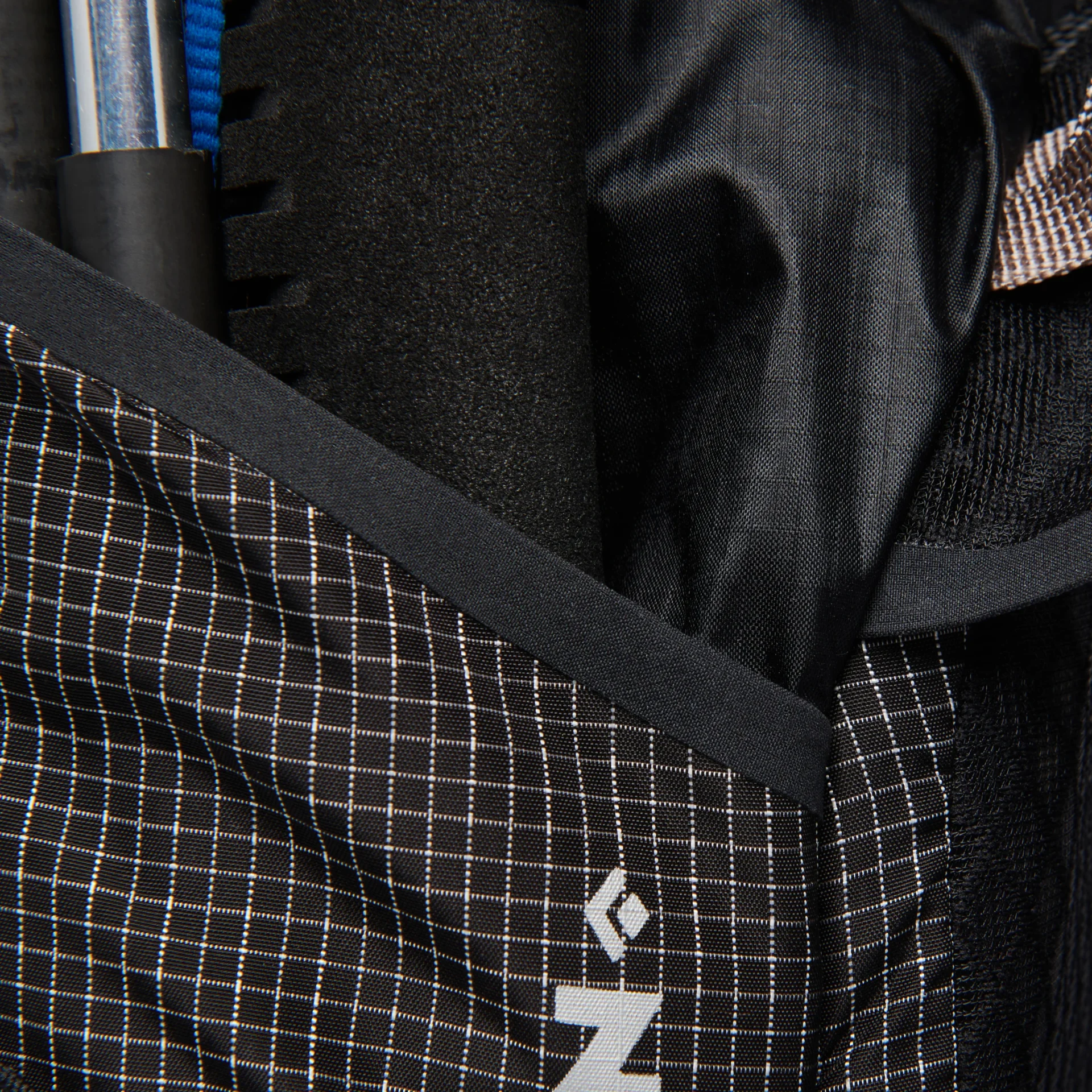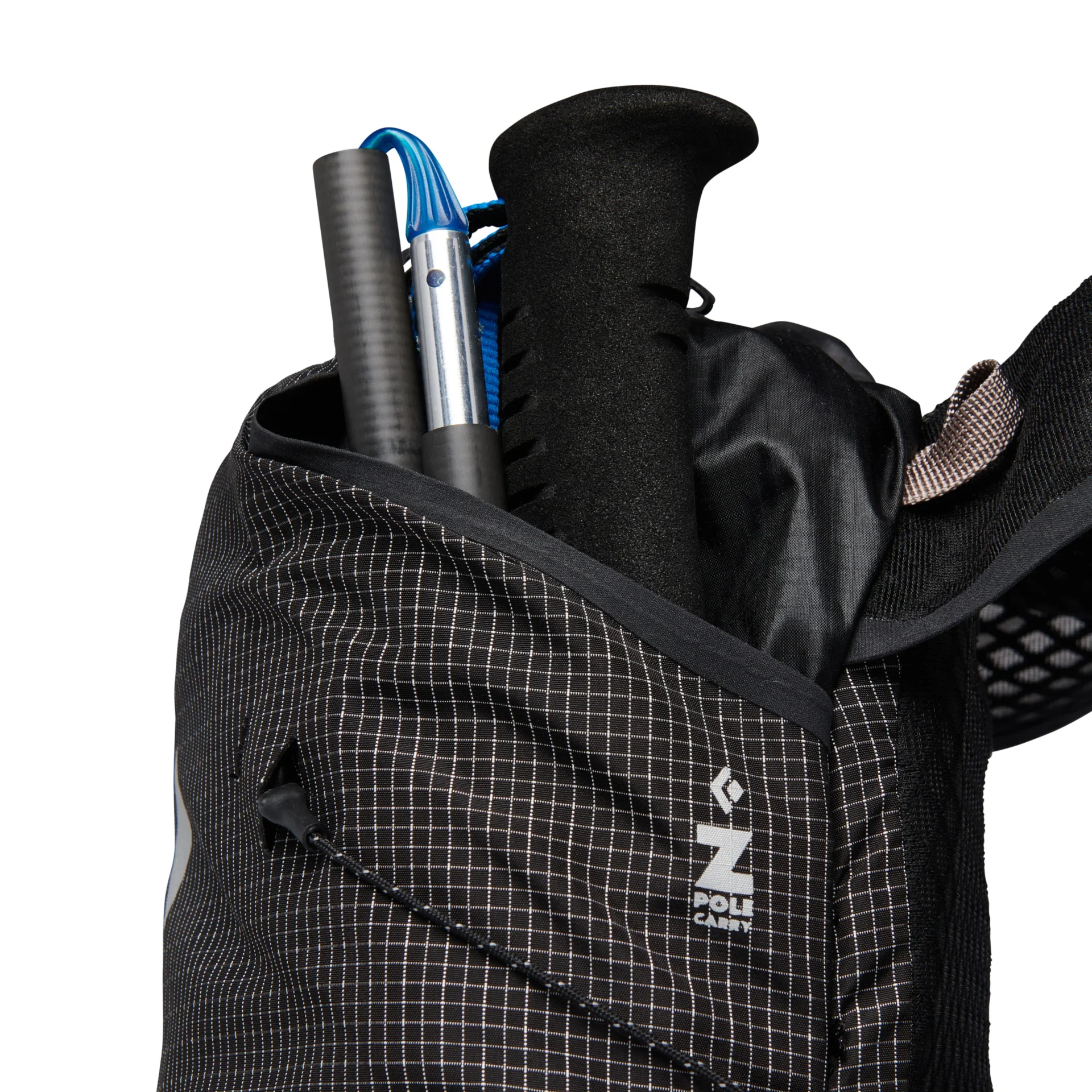 Made for long days on the move. Made for long days on the move, the Gen 2 Distance 8 Pack is built with UHMWPE ripstop body fabrics and an entirely unique harness system that moves with you. Stretch-woven “wings” extend from the back panel along the sides to provide a secure and chafe-free fit. Easy to use Z-Pole storage can be deployed on the move, while dual side compression allows you to modify carry capacity as you go. The pack is made with BD SETT (Stitchless Edge Taping Technology) that improves fi t, comfort and durability on the move. The Distance 8 has an internal zip pocket, side stretch stash pockets, and a single zip pocket on the shoulder strap.
