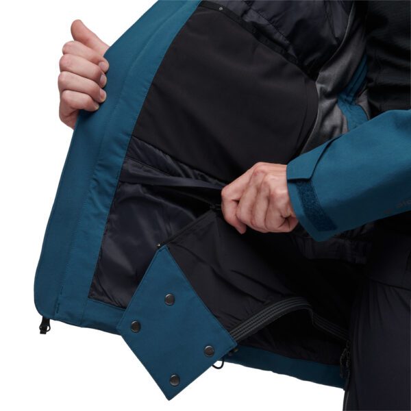 Built to provide extra warmth on sub-zero backcountry tours in the harshest winter conditions, the Recon Stretch Insulation Shell utilizes zoned insulation to trap body heat in key areas while remaining breathable on panels prone to overheating. The shell’s durable 4-way stretch fabric is combined with our waterproof/breathable solution, BD.dry™, to deliver a jacket ready for all day winter missions. With one chest pocket to hold essentials and two mesh internal drop pockets for skins or extra layers, the Recon features ample storage, while the jacket’s removable powder skirt adds versatility for variable conditions. The Recon also has pit zip vents for easy temperature regulation on the skin-track, a waterproof front zipper and a ski-helmet compatible hood for added protection on storm days.