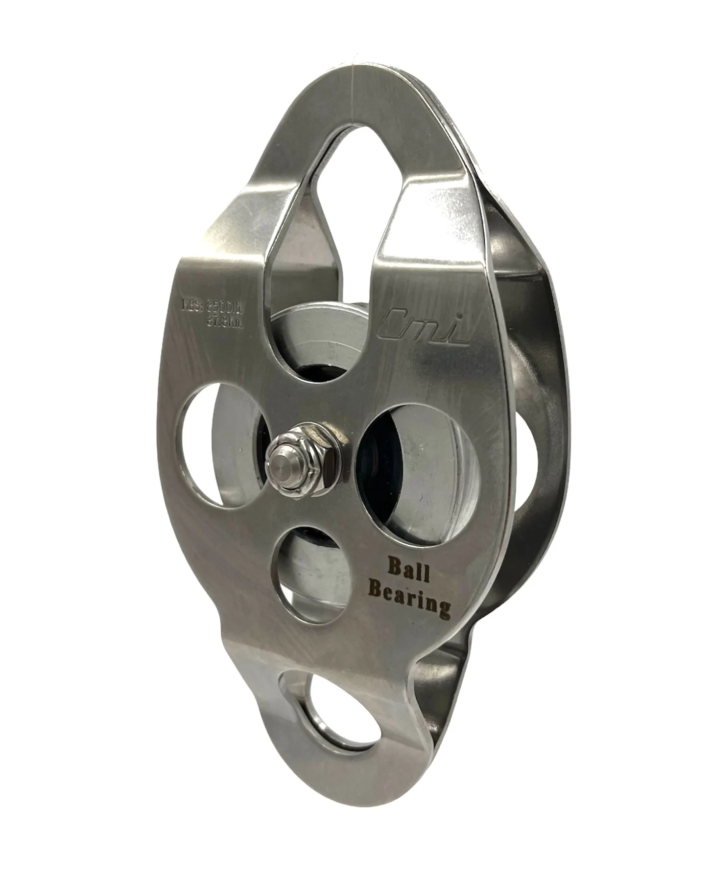 Stainless steel sideplates, 2 3/8″ aluminum sheave, ball bearing, and stainless steel axle.