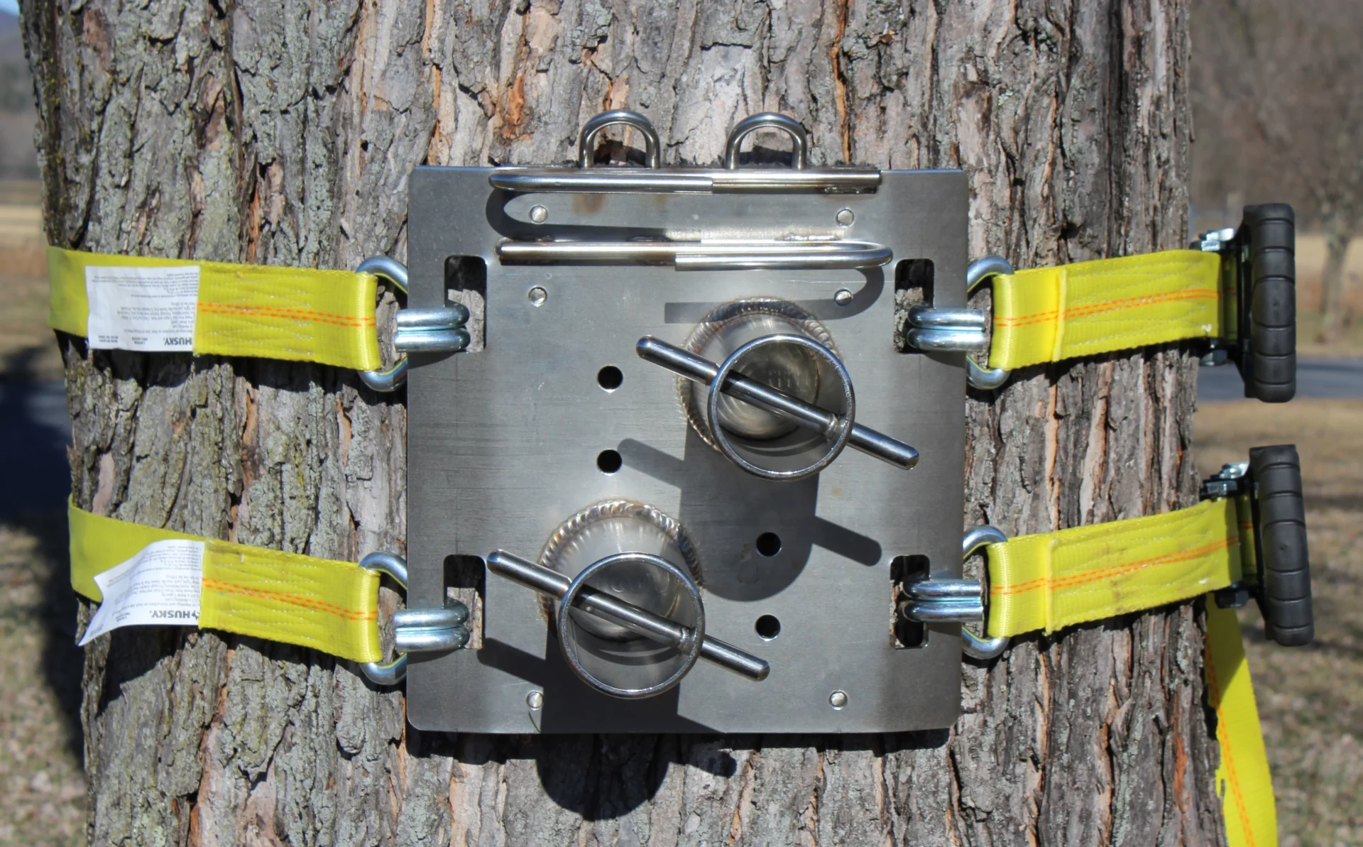 The CMI LCD (Lowering Control Device) aides a ground crew in adding friction to a lowering system. This allows large pieces of wood to be safely lowered to the ground. The LCD attaches to most trees using two heavy duty ratchet straps (included). The LCD has a working load limit of 6,000 lbs/ 2721 kg. It weighs in at 16.9 lbs/ 7.66 kg and has a max rope diameter of ¾” (19mm). It can be mounted to just about any sized tree and is constructed of 304 stainless steel.