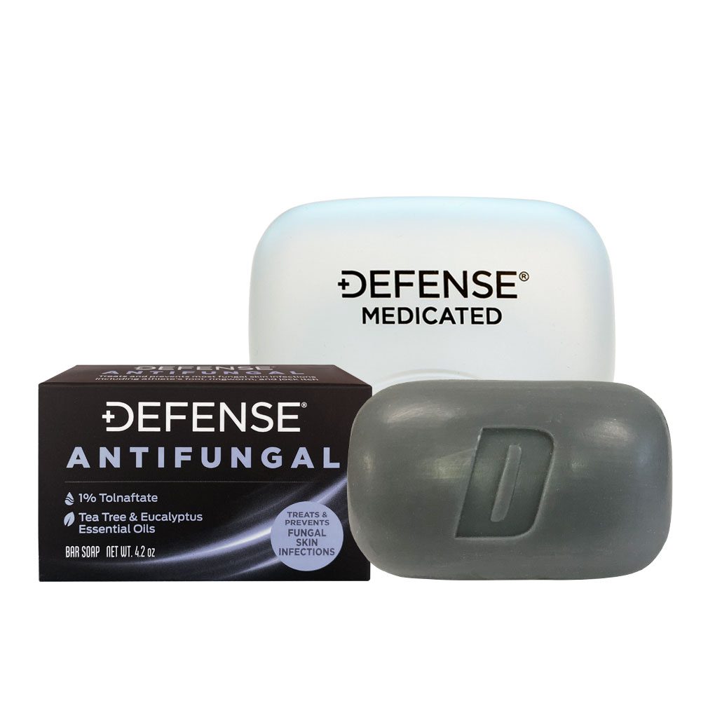 Our Defense Soap antifungal medicated bar soap is FDA cleared and our ingredients have been proven clinically effective in the treatment of most fungal infections, including most athlete’s foot, ringworm, and jock itch. Our antifungal soap is our original bar soap with FDA approved antifungal agent, tolnaftate (1%). This product also provides effective relief from itching, burning, and cracking skin. Each bar comes with a snap-tight case to keep this medicated product away from common soaps or toiletries in your gym back. This product is made in the USA.