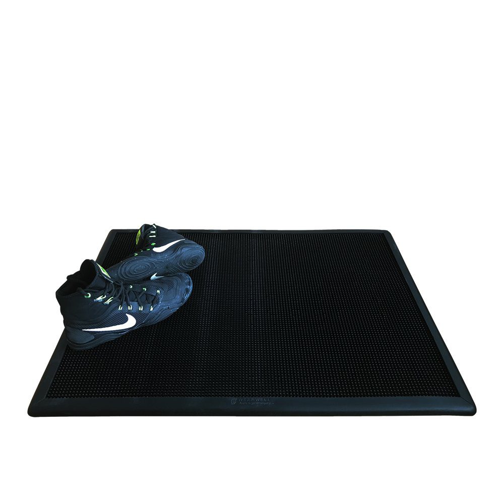 - Heavy duty 24″ x 32″ rubber mat cleans shoe soles