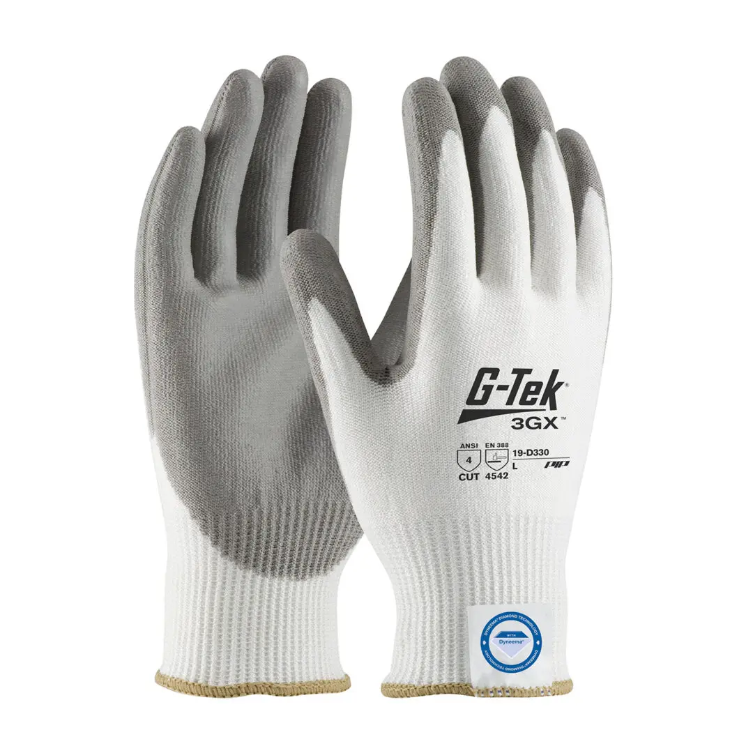 G-Tek® 3GX® Seamless Knit A4 Dyneema® Diamond Blended Glove with Polyurethane Coated Flat Grip on Palm & Fingers