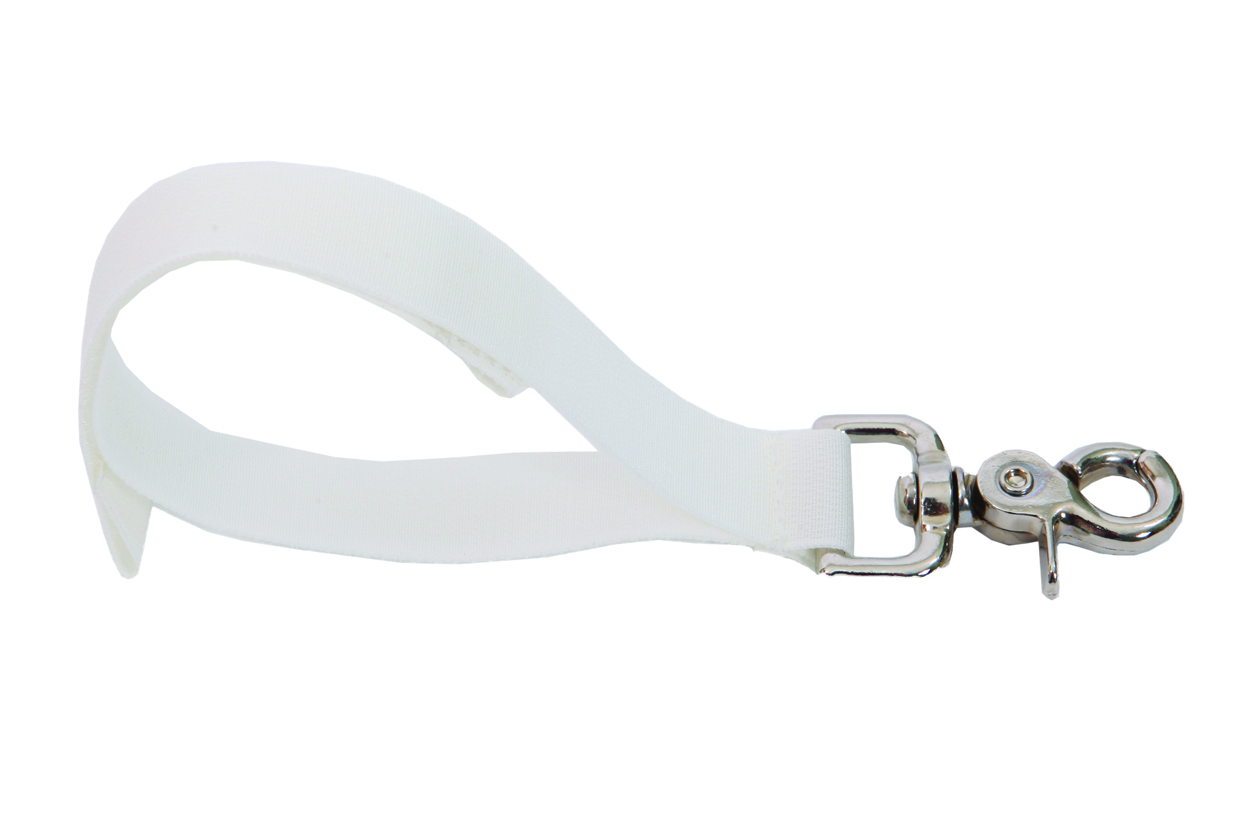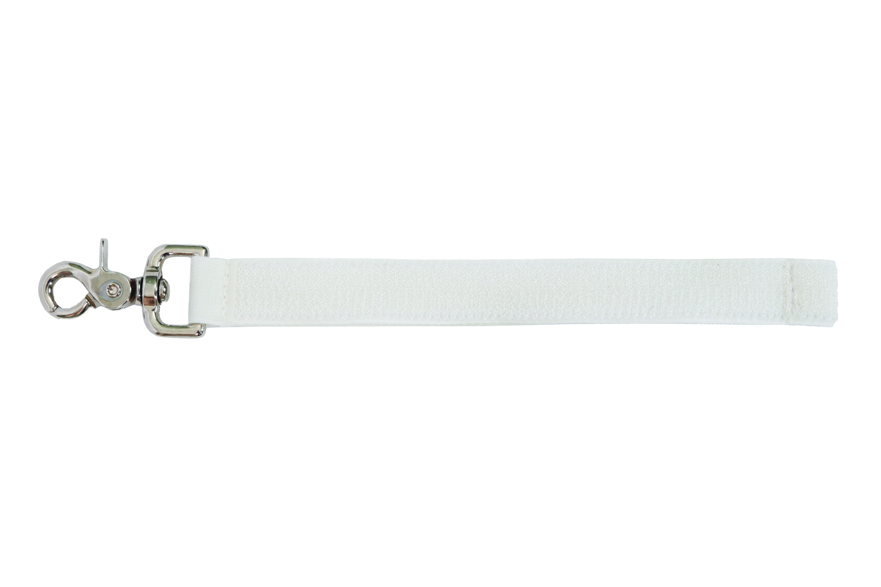 The glove strap is made of Hi-Air components (flame retardant), special woven hook and loop tapes made of a Nomex composite. This strap will not melt and run down your coat like the nylon and poly web straps currently on the market have a potential to do, should you fail to remove it. The strap wraps around a pair of firefighter gloves and can be attached to turnout gear with a glove friendly trigger snap hook. It is available in white and weighs 3 oz. with a length of 7”.