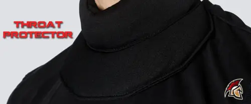 The Spartan 2.0 Throat Protector incorporates contoured plastic trauma plating and ¼” foam padding to protect the trachea from an accidental throat strike. It’s form fitted design, adjustable neck strap and soft-textured lining guarantees that it won’t slip or spin and choke you during training. It’s also an indispensable part of your head and torso protection when using training ammunitions or projectile-based training weapons.