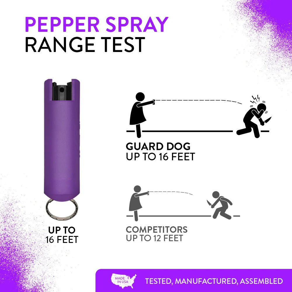 - Sprays up to 16 feet, making it the best pepper spray option for long-range defense.