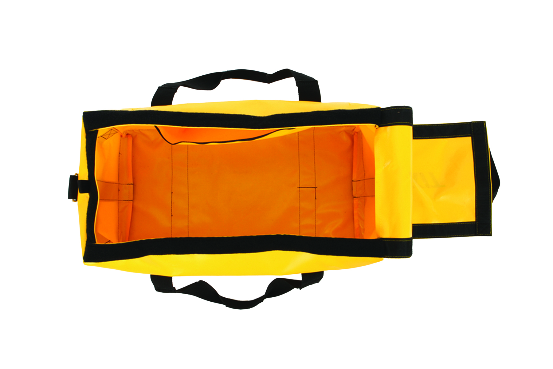 Designed to carry the tools and adapters needed to combat fire in high rise buildings, the bag is constructed with R&B Fabrication’s Tuff Bottom for superior durability. The Velcro® closure on top allows for quick access with your gloves on. This bag will hold a pipe wrench, spanner wrench, flo-thru pressure gauge, quarter turn valve, wedges, adapters, door straps, rope or hose. It is available in yellow and weighs 36 oz. The overall dimensions are 24″L x 12″W x 9″H.