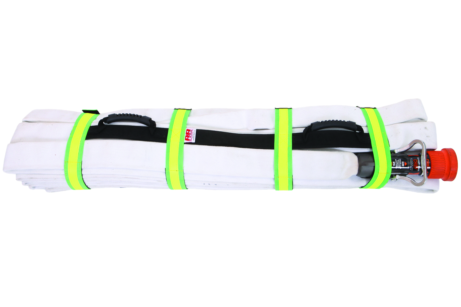 R&B hose straps are built tough with quick release Velcro® closures, molded rubber grips, 3M™ reflective trim and a Nylon reinforced spine. Using longer lays allows the hose bundle to be carried over your shoulder or SCBA, while shorter lays can be carried at arms length. R&B hose straps make deploying hose simple in difficult situations. All hose lengths mentioned are suggested capacity only. Size of hose and length of the hose lay will determine each straps’ final capacity.36” in length, each strap has an adjustable circumference of 22” – 34”. This weighs 25.12 oz.