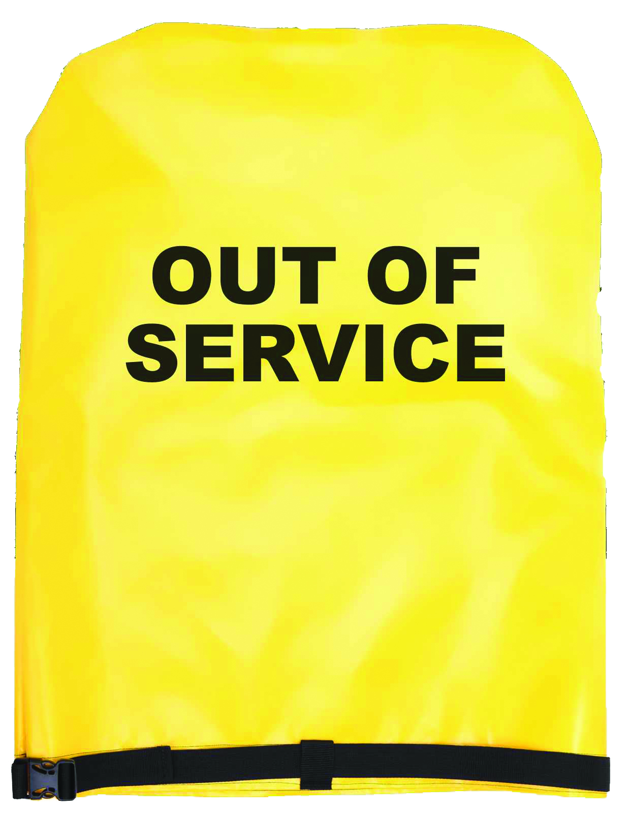 A slip over hydrant cover was designed to identify fire hydrants that are out of service. Constructed of 22 oz. yellow vinyl with 4” letters stating “OUT OF SERVICE” on both sides, the cover is held in place with a 1” web strap with adjustable side release buckles around the bottom of the cover. It is available in yellow and weighs 32 oz. The dimensions are 30”W x 36”H, with a circumference of 60”.