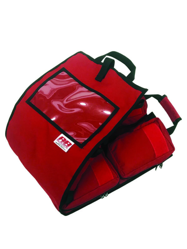 This kit is constructed of denier polyester and contains 8 individual pouches for multiple patients. Individual pouches are held in place with Velcro® for quick release. Additional slot pockets on each side provide additional storage. A clear vinyl window on the outside is provided for inventory tracking and reports. The kit is sold empty with 3 optional bleeding control content kits available (See page 34 for details). It is available in red and its empty weight is 30 oz. The measurements are: Closed – 18”L x 12”W x 7”D Open – 36”L x 12”W x 3”D