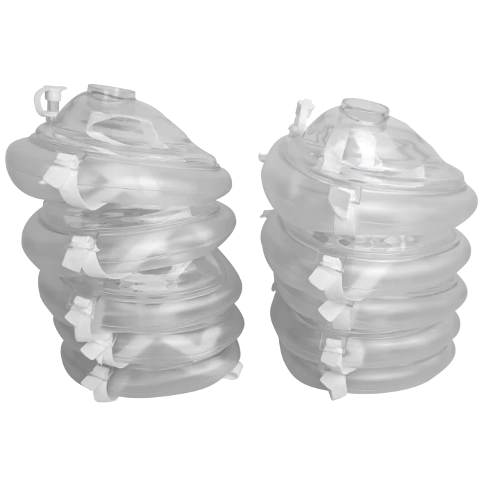 This Kemp USA CPR Training kit is an excellent, cost effective kit for CPR training classes. The kit comprises ten CPR mask cuffs and ten individually packaged blue training valves. CPR masks are constructed from clear, durable, latex-free silicone. The disposable one-way valve ensures hygienic and effective training with medical supplies and equipment. CPR masks are suitable for both adult and child applications and features a filtered training valve to maximize safety during training sessions. The CPR mask can be easily inverted for use on child manikins during practice. This cost-effective tool is ideal for CPR training classes, utilizing a genuine CPR mask and disposable valve, and is conveniently available in a pack of ten.