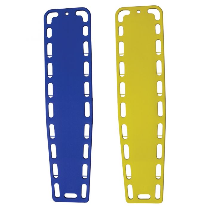 Manufactured with mass casualty situations in mind, although it can be used in everyday emergency situations as well. Strong, yet economical choice and similar to our Kemp USA AB Spineboard (Item #10-993). It has 10 pins for strapping and 21 large hand holes to make carrying easy.