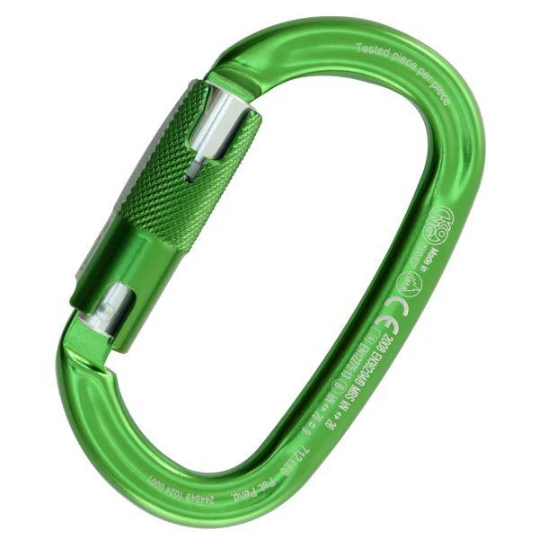 Aluminum carabiner with a wide opening, equipped with the new RISE Lock™ automatic sleeve.