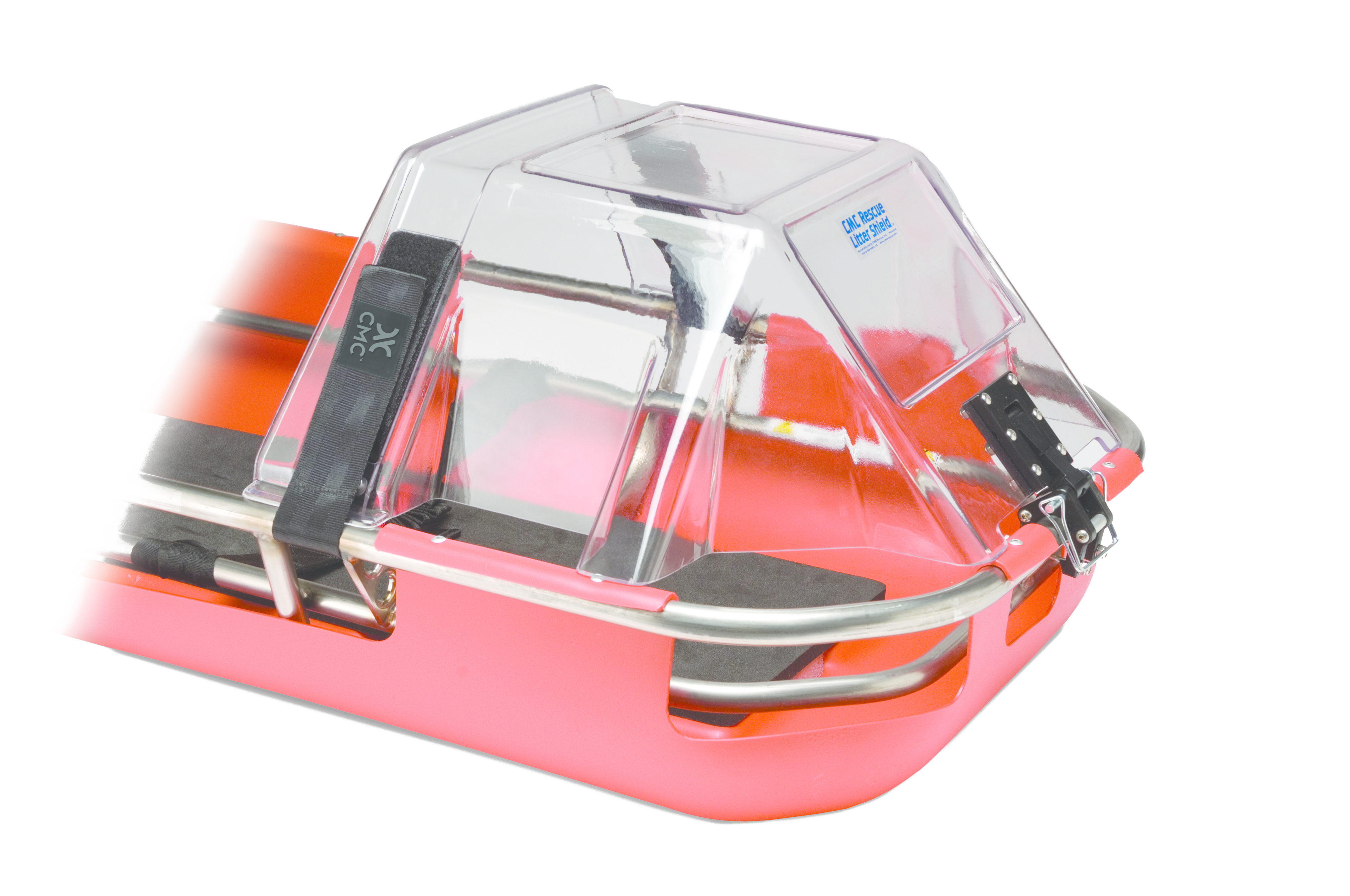 Trusted and proven from years in the field, our Litter Shield attaches to a mount on the litter rail that allows the shield to quickly pivot and nest inside the litter for transporting and storing. A quick-release pin allows the shield to be completely removed when necessary. This lower-profile version makes storage easier, but does not provide as much clearance for the patient’s face as the Litter Shield Plus, see below. Each Litter Shield requires a railing clamp.
