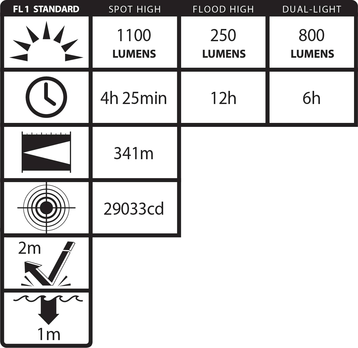 - High Dual-Light Runtime (h): 6