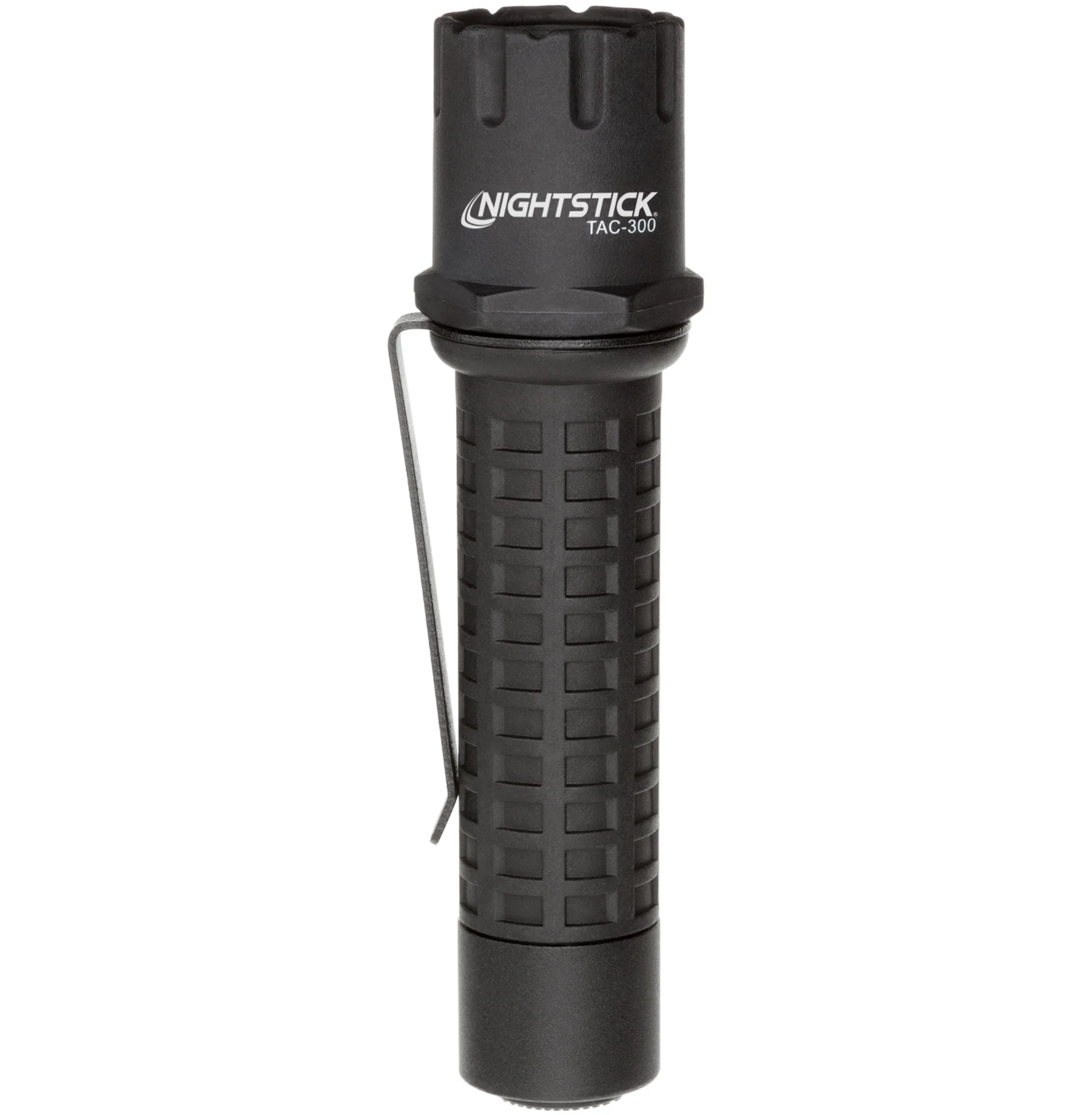 The Nightstick TAC-300 is a 2 CR123 LED Tactical Polymer Flashlight that outperforms most other lights that cost twice as much. With an LED rated at 180 lumens and its high-efficiency deep parabolic reflector, the TAC-300s beam has an effective range of 190 meters (over 620 feet).