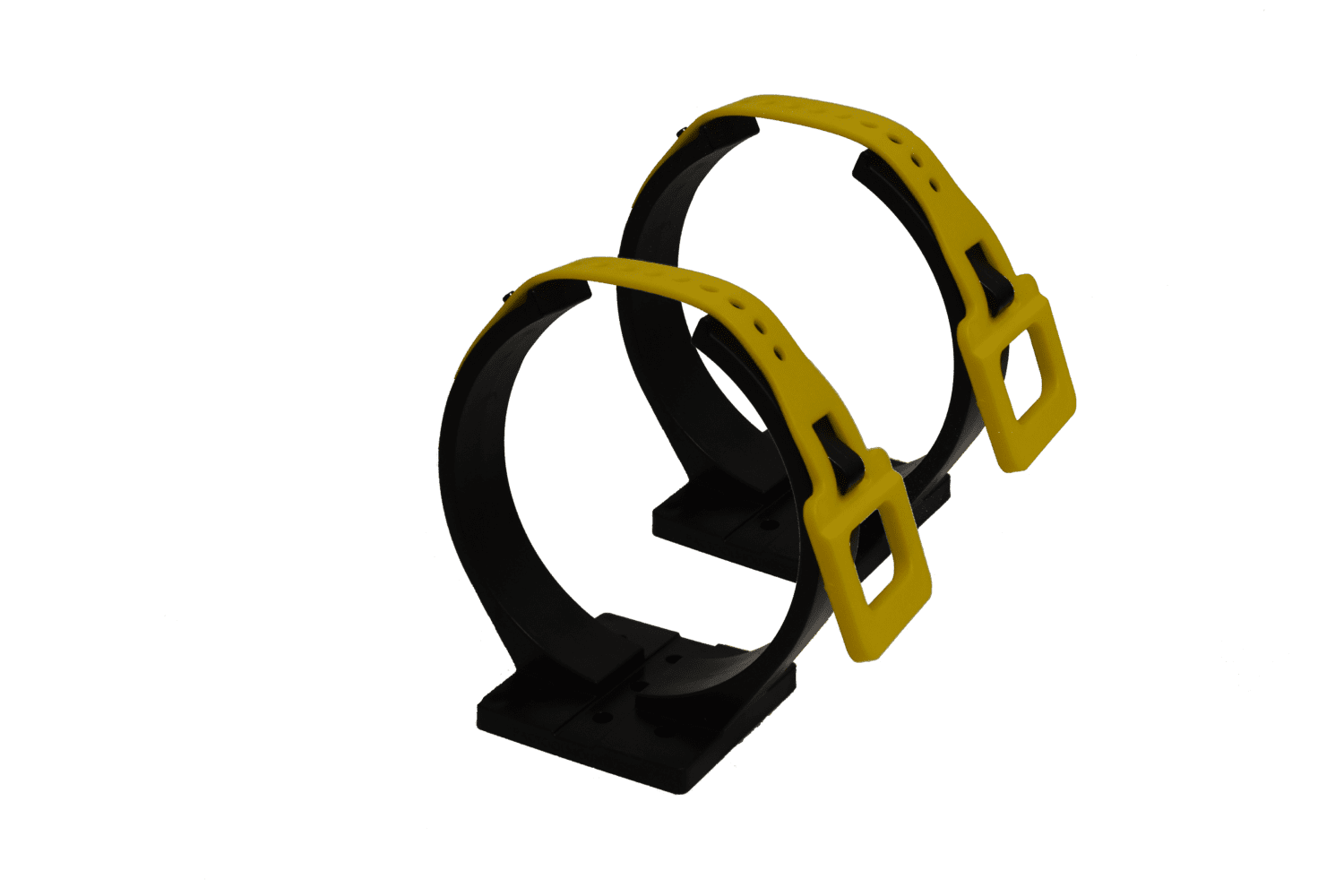 The Super Flex brackets are designed to provide a secure grip-like mount for large cylindrical items. The 3” brackets are ideal for rams, struts, and 3lb extinguishers. The 4” brackets work well for oxygen bottles, rams, struts, and 5lb extinguishers. The 6” brackets are ideal for 10lb extinguishers and SCBA bottles. The Super Flex brackets are space saving with a small footprint with an accessible lock strap for easy use. The adjustable lock strap provides additional security.