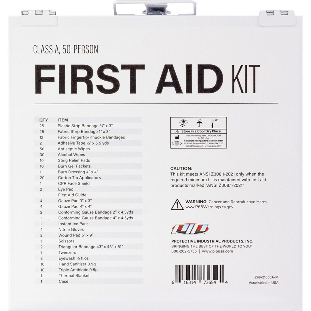 • Meets ANSI Z308.1-2021 requirements only when the required minimum fill is maintained with first aid products marked ANSI Z308.1-2021