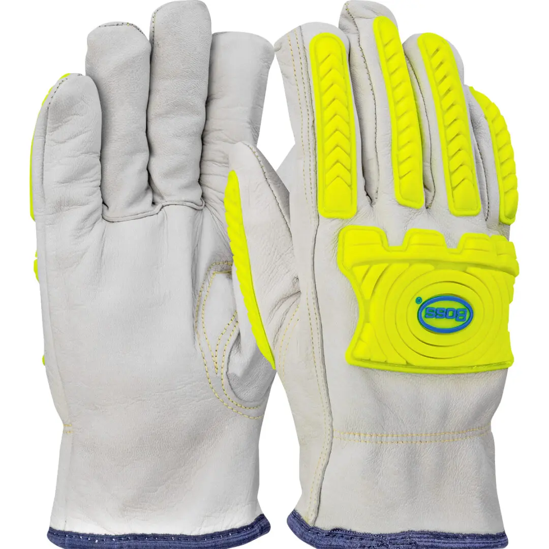 PIP Boss® Top Grain Goatskin Leather Drivers Glove with UHMWPE Blend Lining and Hi-Vis Impact Protection