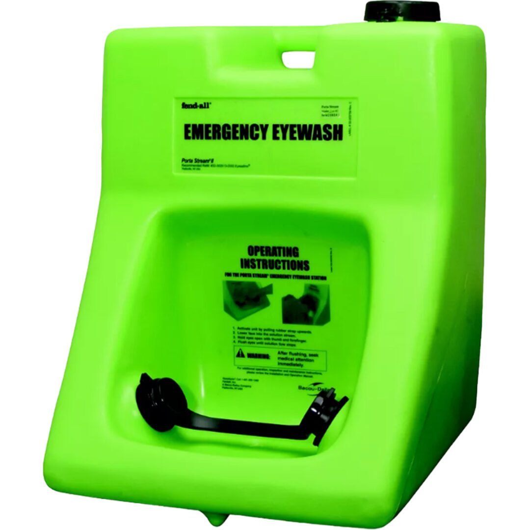 The Fendall 2000 Eyewash station has all of the features and benefits that you would expect of a state-of-the-art portable emergency eyewash station. It features an ergonomic design and helps ensure compliance with ANSI’s 15-minute requirement. With the Fendall 2000, injured/contaminated eyes are treated with buffered and Ph balanced saline solution in a fast, precise and convenient way.