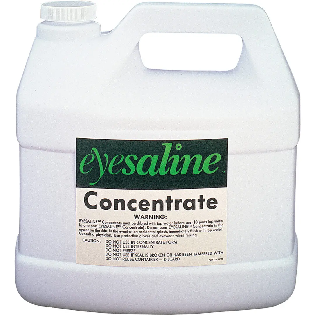 Eyesaline® 180 ounce Saline Concentrate Eyewash Solution is mixed with clean, potable water in the ratio of 10:1 to create preserved, buffered and physiologically correct saline solution. The station must be cleaned to remove contamination from the station walls before refilling the solution. Concentrate solution renders a constant fluid flow rate and stream height for the entire 15 min of flushing period when used with Porta Stream® I and II or other 14 – 16 gallon eyewash stations. 30 months of shelf life when unopened/6 months once opened from date of manufacture.