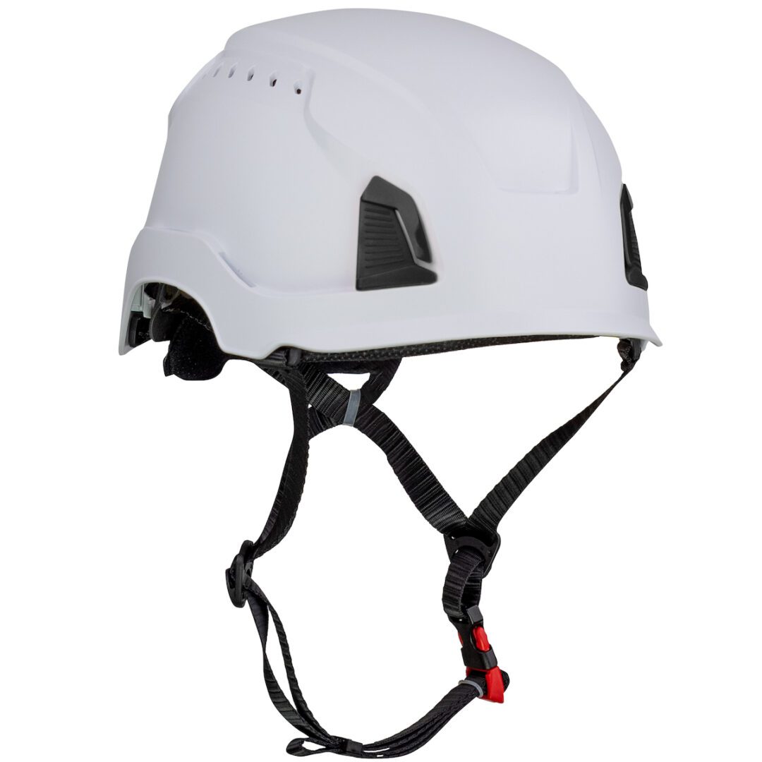 This ANSI certified Type I, Class C industrial climbing helmet offers superior impact protection while working at heights or in confined spaces. It features an ultra-lightweight ABS vented shell and an integrated EPS inner foam liner, that work in conjunction with the adjustable 4-point HDPE suspension to provide exceptional protection from top of head as well as lateral impact hazards.