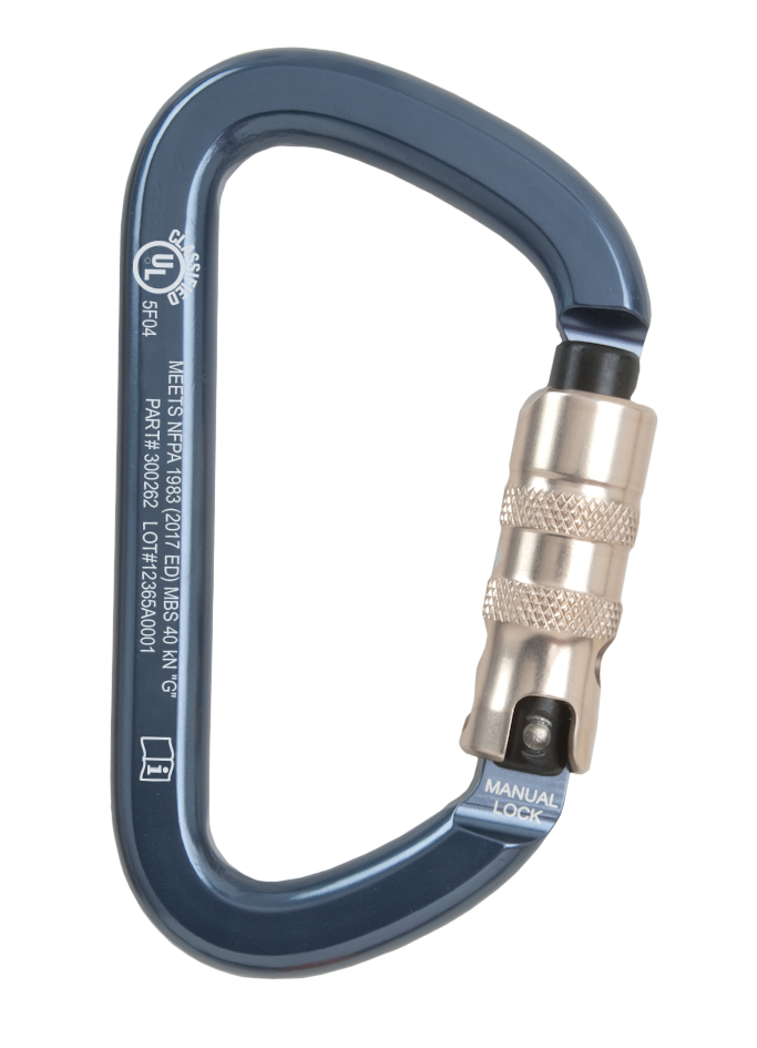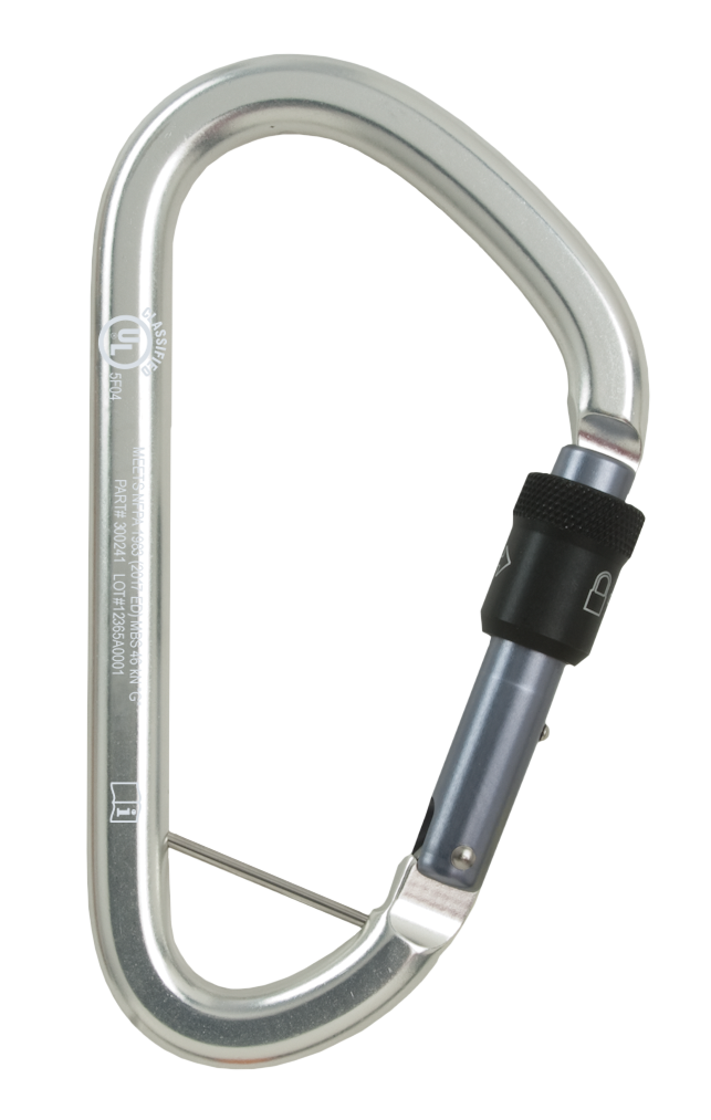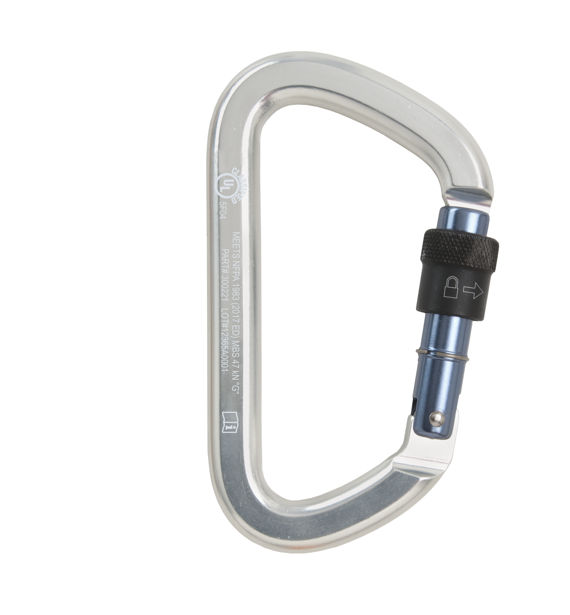 Rescuers working in the most demanding circumstances will appreciate our ProSeries Aluminum Carabiners, the first aluminum carabiners to meet NFPA strength requirements for General Use. Combining high performance with minimum weight, these carabiners significantly reduce the weight of a rescuer’s gear while maintaining the highest possible margin of safety. The patented key-lock design eliminates snagging when removing the carabiner from your harness, and a redesigned gate provides a full 1.1 inch (28 mm) opening on the standard size version and a 2.1 inch (53 mm) opening on the XL version. Gate choices include the traditional Screw-Lock, our easy-to-open-with-one-hand Auto-Lock, our innovative Manual-Lock, and an ANSI-certified (Z359.12) gate SKU #300273. All of the XL carabiners have a removable keeper pin.