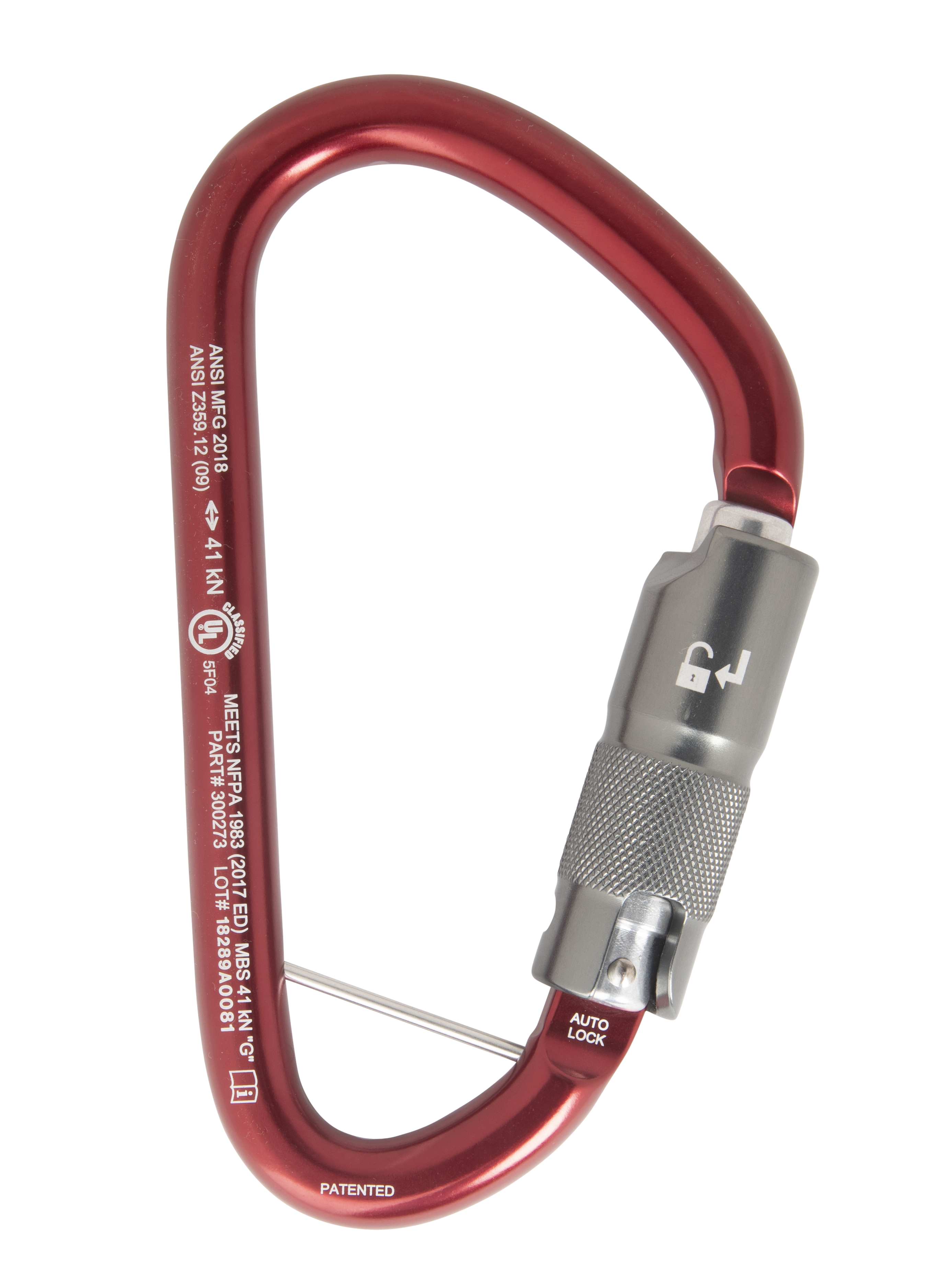 | XL Auto-Lock, Red | 300253 | 10.2 OZ (289 G) | 2.1 IN (53 MM) | 6.62 IN (168 MM) | XL AUTO-LOCK / RED | GENERAL USE | 41 KN (9,217 LBF) | $69 |