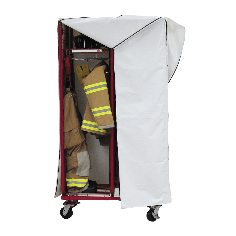 Gear Guard covers are made to fit the Red Rack PPE locker system to protect your turnout gear from UV light during storage, making it last longer.