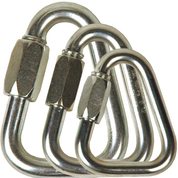 Links are often used as an inexpensive alternative to standard carabiners. They are most effective in applications for semi-permanent attachments. The Delta shape Tri-link is used where multi-directional loading is encountered. All links are complete with a long threaded nut closure.
