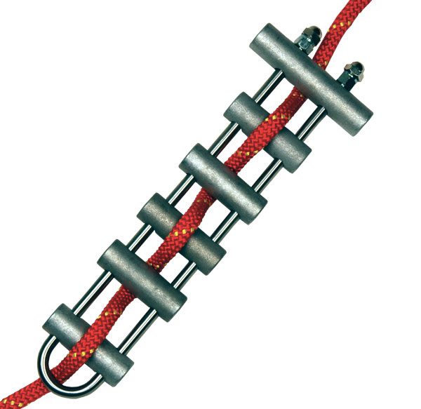The safest, heavy-duty lowering and rappelling device. It can be placed on the rope at any point. Friction is varied by sliding easily rigged bars up or down – even while on rappel or during lowering operations. Specially designed straight-cut 1″ aluminum friction bars help prevent mis-rigging. Extended top bar for quick lock-off. Accommodates ropes from 1/4″ to 1 1/2″ or double ropes up to 3/4″. One person can easily control a 1,000 lb. load on 1/2″ rope. Frame manufactured of 304 stainless steel and will accommodate four 13mm carabiners. The special design of the frame distributes the load between both sides of the unit.