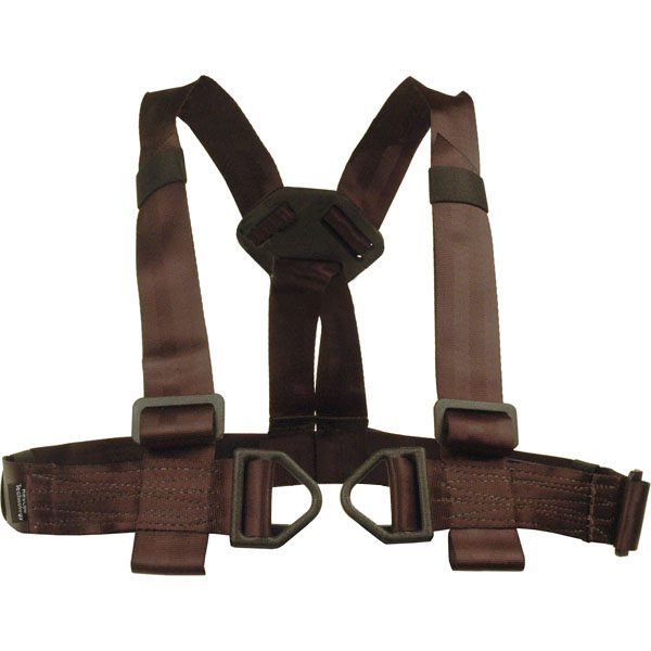 A basic style chest harness with “V” ring attachment points that can be connected with a carabiner or rope. The Standard Chest Harness features 2″ chest strap webbing and 2″ shoulder strap webbing. Fully adjustable. Fits Up to 56″.