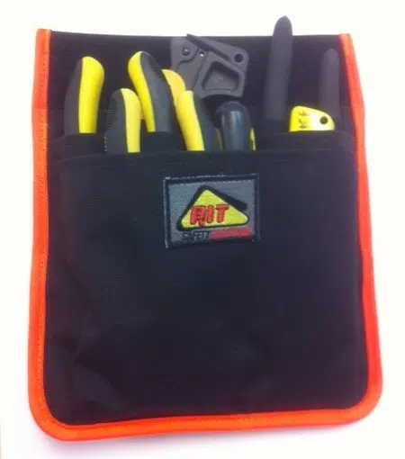 RIT’s Pocket Pack Tool Pouch with back storage compartment fits into the bunker pocket with a Velcro fold that ensures nothing falls out while working. No handles on the bag- avoiding inadvertent pulling out of pocket and losing valuable tools. Keeps contents in place and protects the integrity of the pocket, saving money on repairs.