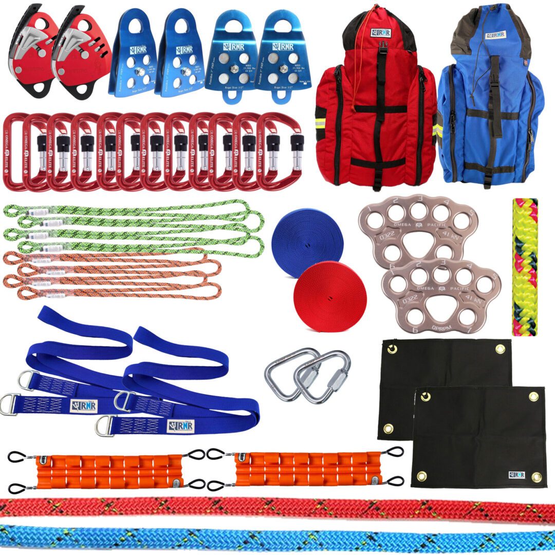 Built around the Petzl Maestro, the Twin Tension System provides a fast and safe lowering/raising system. This kit comes with two color-coded Riggers Packs that each carry independent hauling/lowering systems designed to work together in mirrored configurations. Rescuers can use these components to build mechanical advantage systems on both 200ft lifelines simultaneously including a 3:1, 3:1 with change of direction, or complex 5:1. These ready-to-go systems minimize gear sorting and allocation.