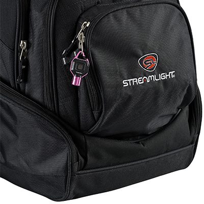 Spring-loaded clip with carabiner shape hangs cleanly on key rings, zippers, lanyards, etc.