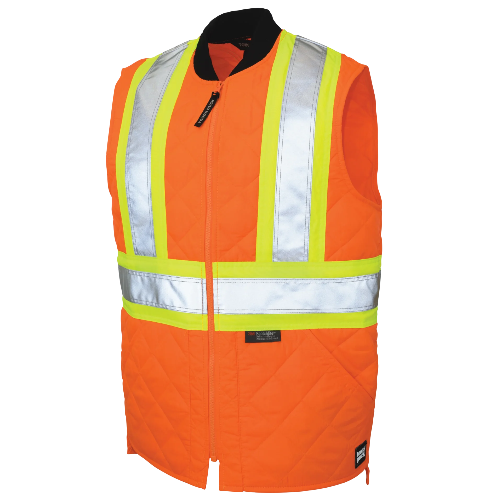 This is a lightweight body warmer vest, perfect for the cold weather season or year-round layering. Crafted from 100% polyester with durable water repellent finish and lined with 100% polyester quilted to 3 oz. polyester insulation, this vest provides essential warmth and comfort. It features 3M™ 2″ Reflective Material with a 4″ contrast backing for enhanced visibility, along with a front YKK® zipper closure and a rib-knit collar for added style. Practical details include 2 lower patch pockets and an inside pocket for convenient storage. With a drop-back design for extended coverage, this vest is a must-have for outdoor activities and changing seasons.