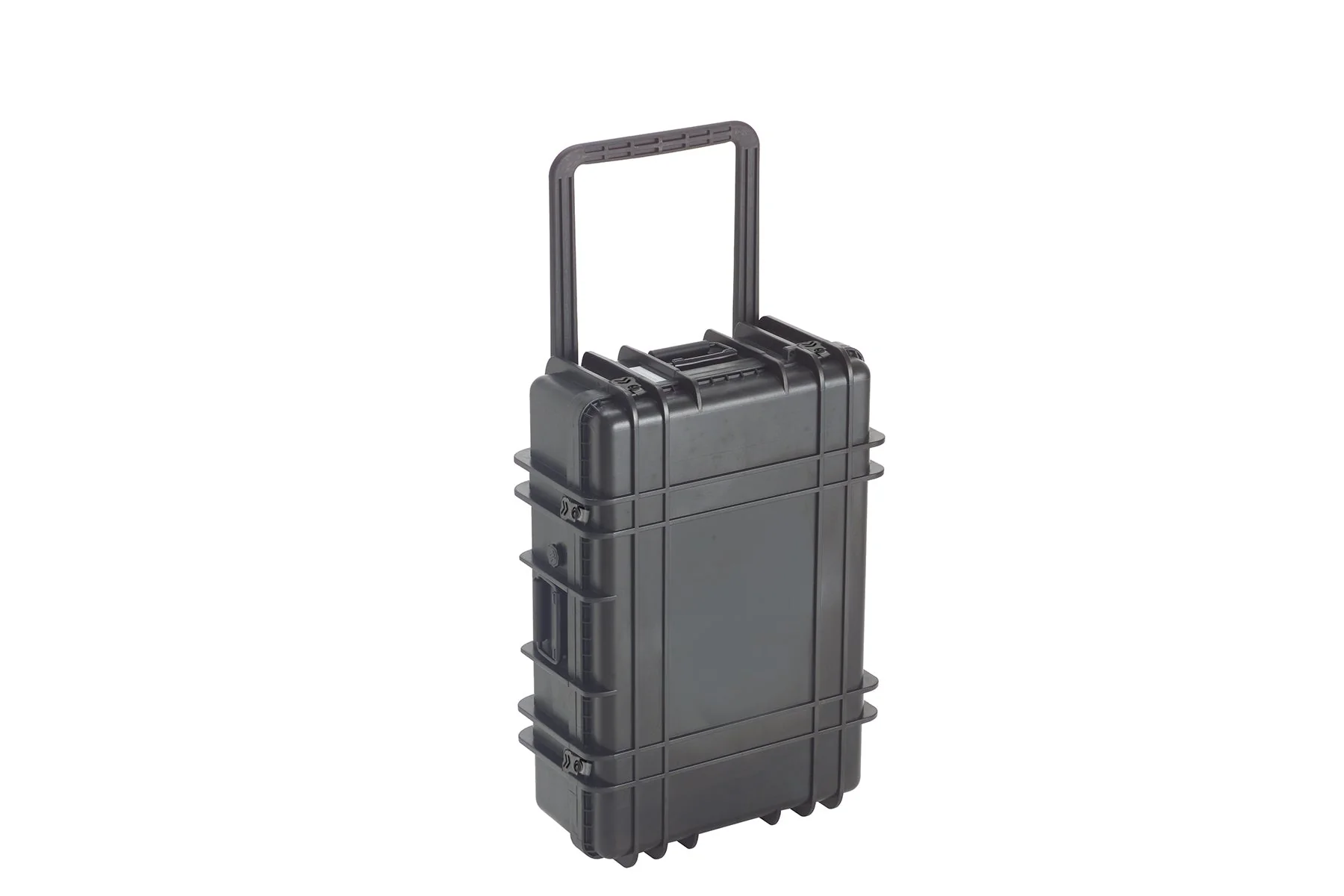 This tough injection-molded wheeled case is designed with rigid reinforced walls to give maximum protection for even the most sensitive equipment. Optional extendable handle and 2-inch wheels make maneuvering easy with heavy loads. User configurable-layered foam filling is also available. All cases include 3 metal spring-loaded handles and stainless steel twist-lock latches. The waterproof, dustproof o-ring seal protects valuable contents including instrumentation, sales presentation packages, test equipment, photographic equipment and other delicate items.