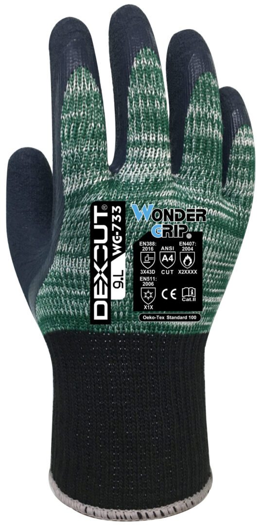 The Wonder Grip® WG-733 Dexcut® is designed for heavy work in dry or slightly greasy environments involving medium to heavy cut hazards. HDML™ coating specially developed by Wonder Grip® offers a non-slip surface, exceptional anti-wear properties and double protection against thermal hazards.
