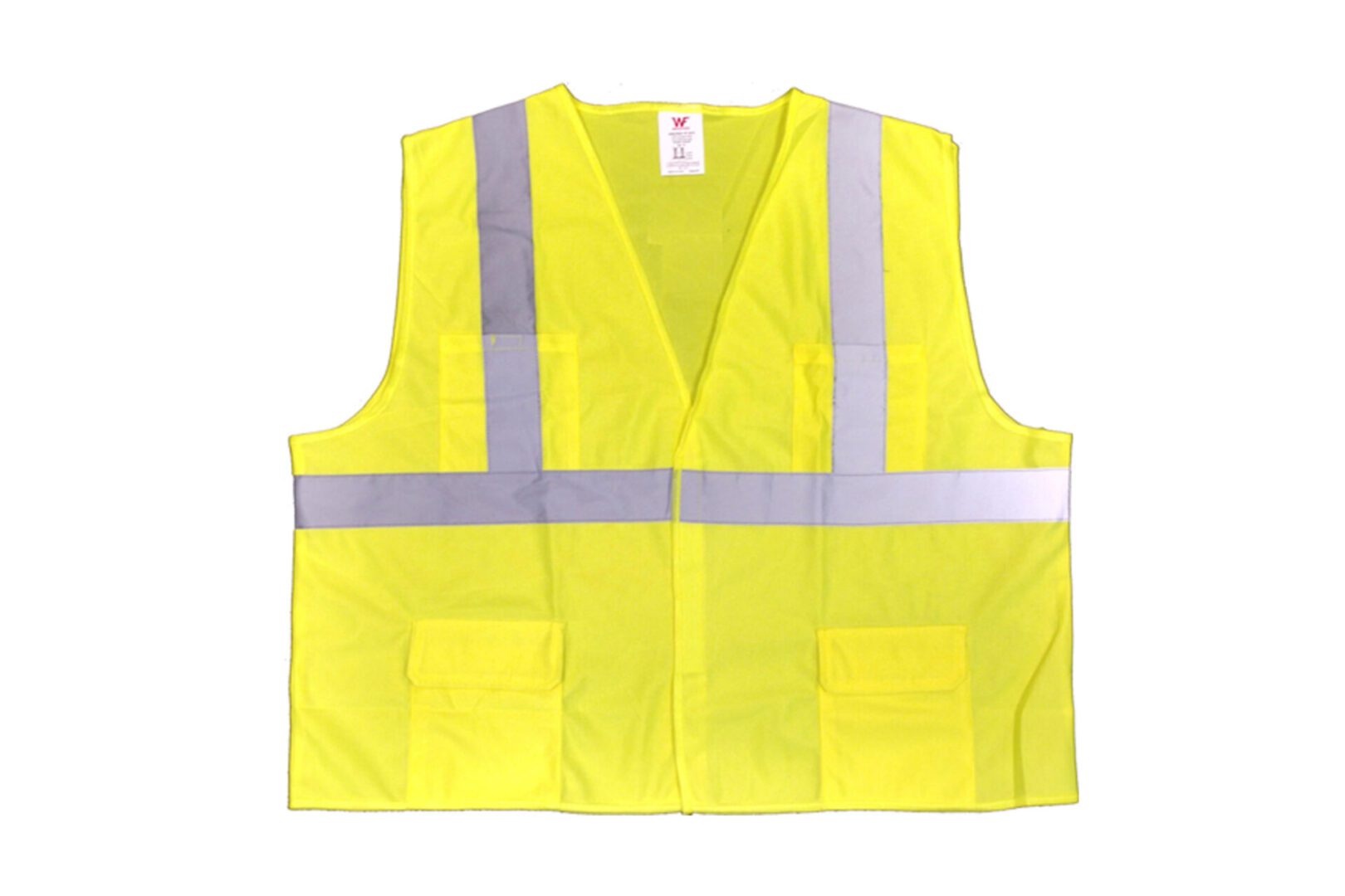 ANSI 107-2015 Compliant Class 2 Solid Fabric Velcro Front Closure Lime Color 6 Pockets Sizes S-5X