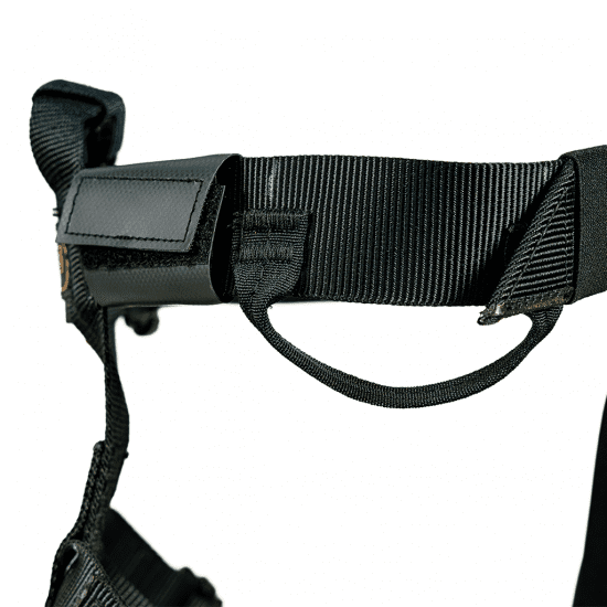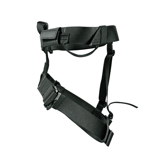 Well-suited for rescue, military, SWAT and tactical rappel applications where a metal attachment point is not necessary. Originally designed for the US Navy Seals tactical teams, the anatomical configuration of the harness has made it the choice for many tactical teams who need a non-restrictive harness system. The front attachment point is provided through slot webbing construction.
