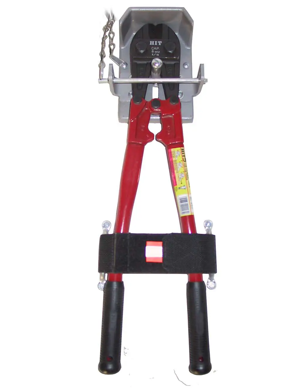 Powder-coated cast aluminum bracket secures head. Heavy-duty, nylon hook & loop straps hold the bolt cutter handles firmly in place.